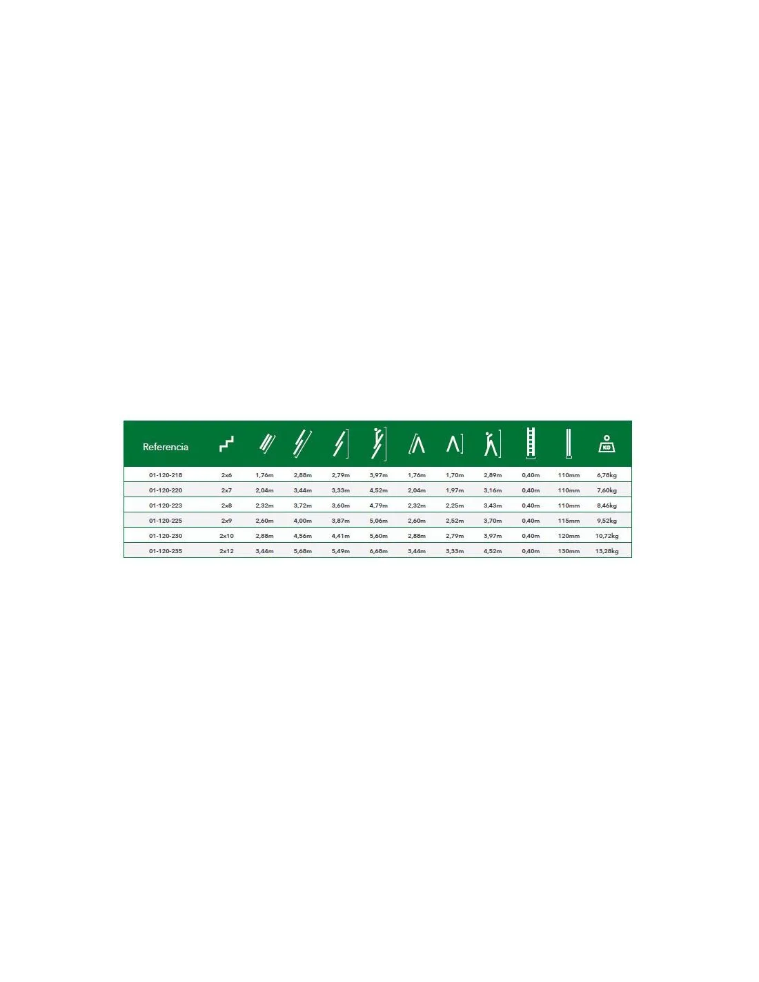FICHA TECNICA DE TODOS LOS MODELOS DE ESCALERAS DOS TRAMOS TREK X2: