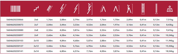 FICHA TÉCNICA DE TODOS LOS MODELOS DE ESCALERAS DOS TRAMOS ELITE X2: