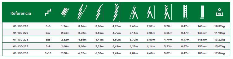 FICHA TECNICA DE TODOS LOS MODELOS DE ESCALERAS TRES TRAMOS TREK X3: