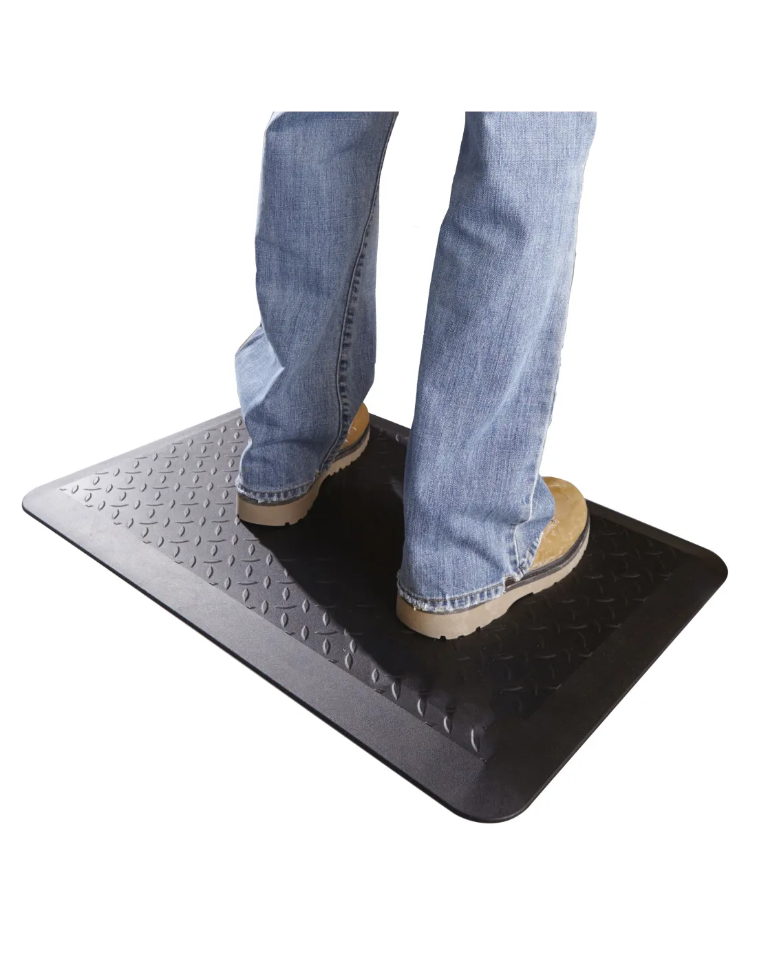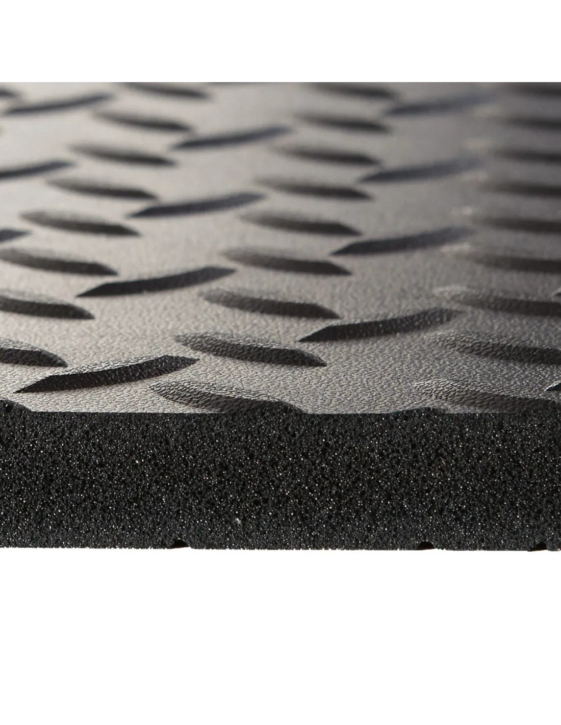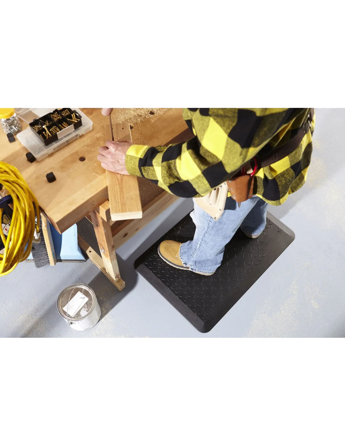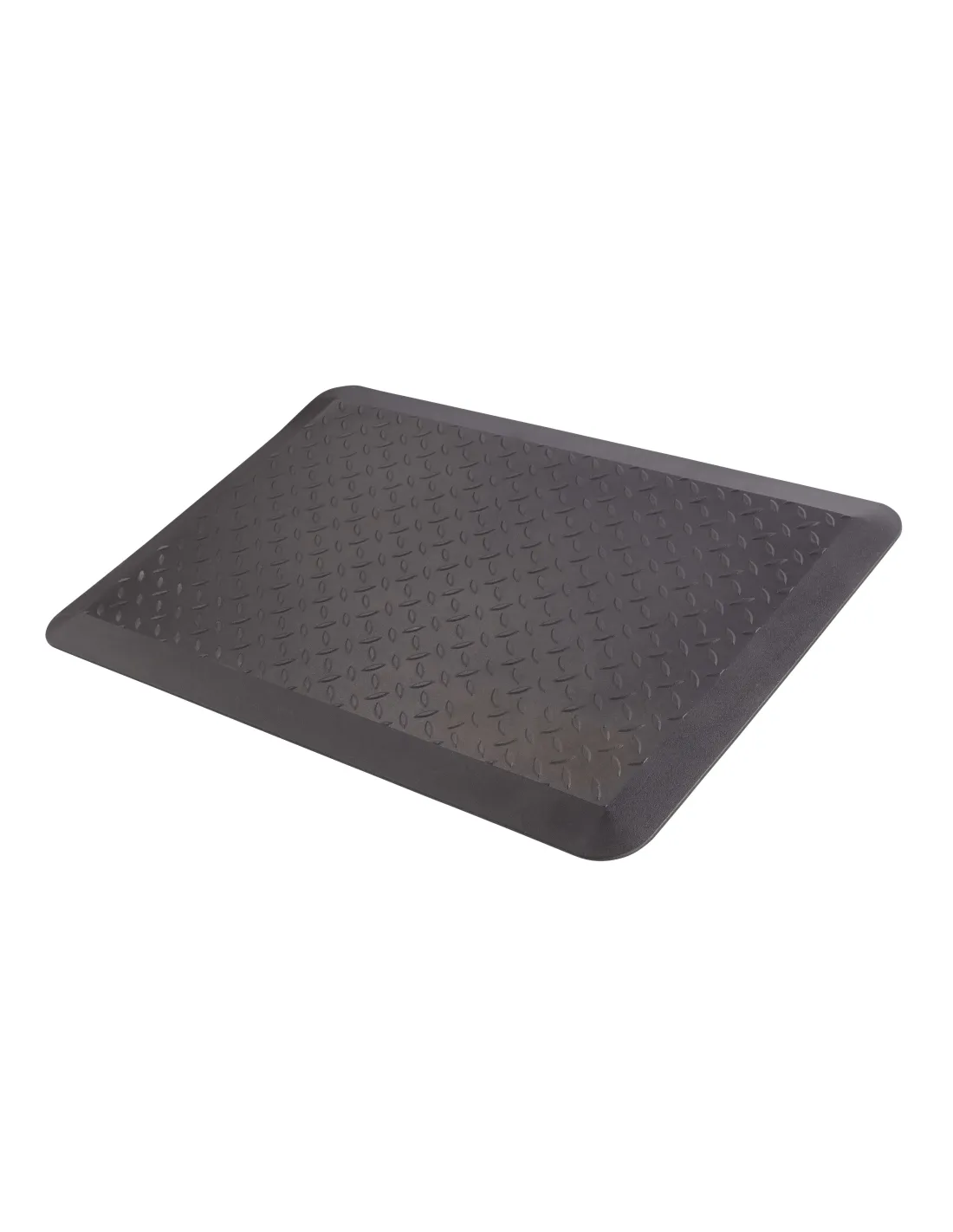La Alfombra Antifatiga Utility Mats de Stanley está hecha de poliuretano, adecuada para aliviar el cansancio que puede producirse en las articulaciones después de varias horas de pie. Alfombra con relieves (dibujo diamante), base antideslizante y bordes biselados que evitarán el enrollado de la misma. Resistente a fluidos y químicos.