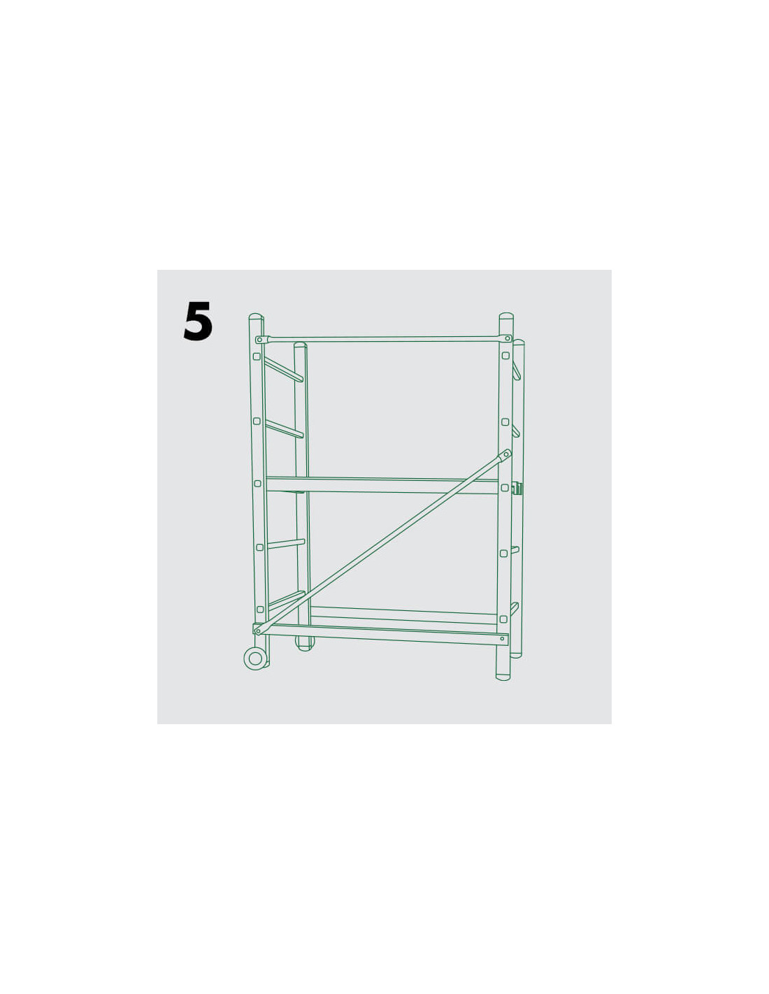 Andamio estable y de peso ligero. Es un andamio de aluminio apto para trabajos alrededor o dentro de casa. Gracias a su formato compacto, es ideal para trabajos en el interior de casa. La altura de trabajo máxima es de 3,00 metros. Este andamio estrecho ha sido diseñado especialmente para tareas comunes. El peso máximo asciende a 150 kg/m2.