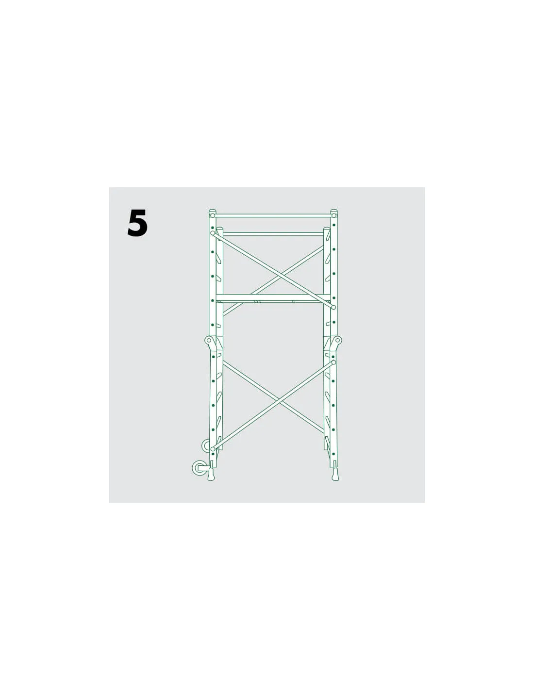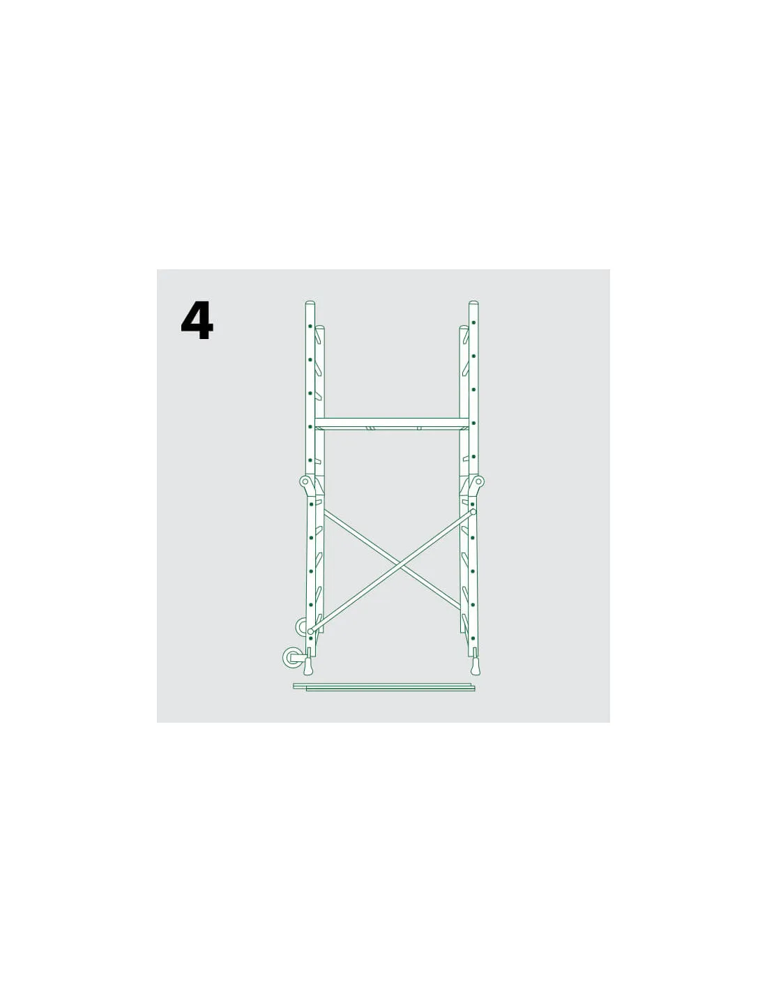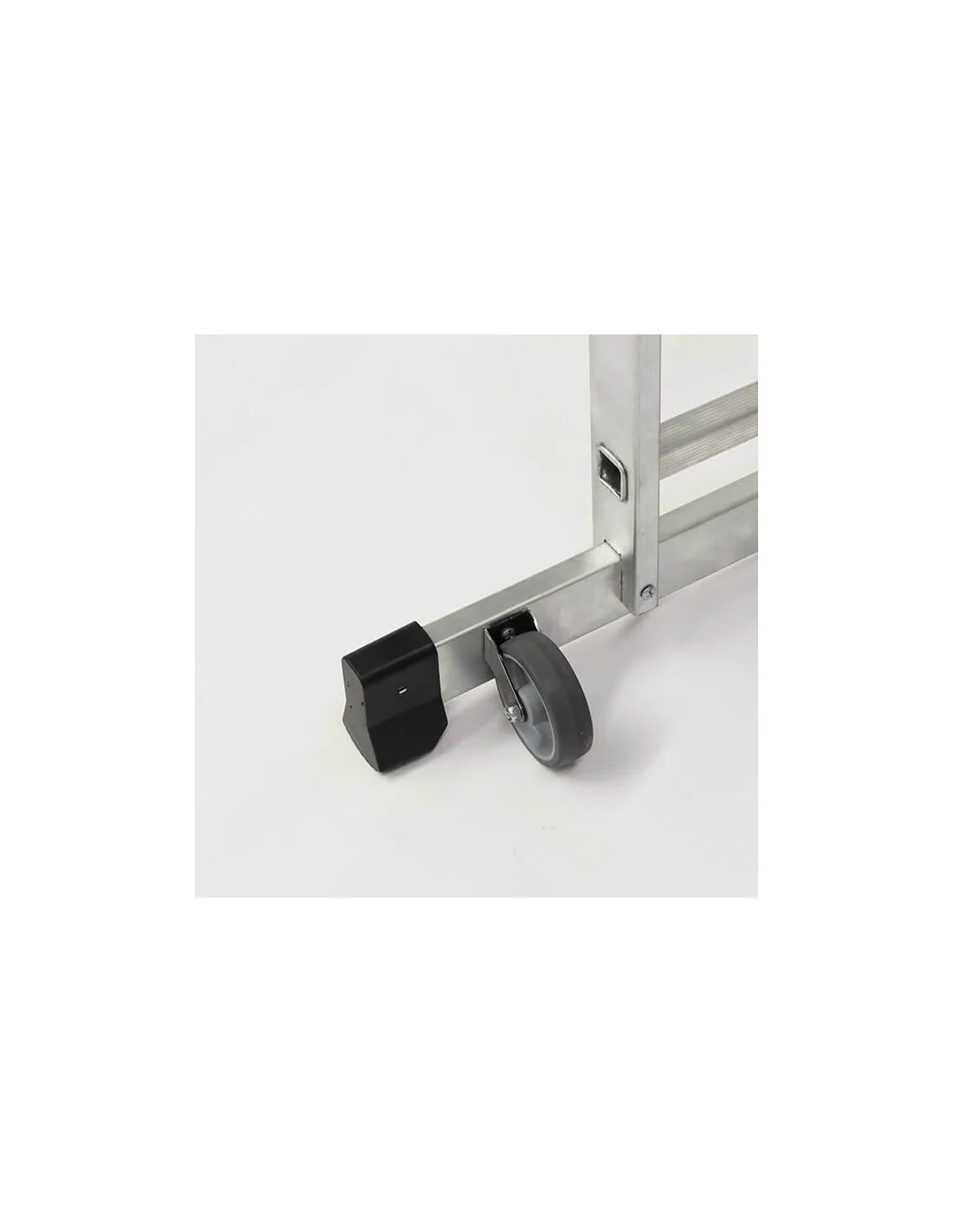 Andamio estable y de peso ligero. Es un andamio de aluminio apto para trabajos alrededor o dentro de casa. Gracias a su formato compacto, es ideal para trabajos en el interior de casa. La altura de trabajo máxima es de 4,00 metros. Este andamio estrecho ha sido diseñado especialmente para tareas comunes. El peso máximo asciende a 150 kg/m2.