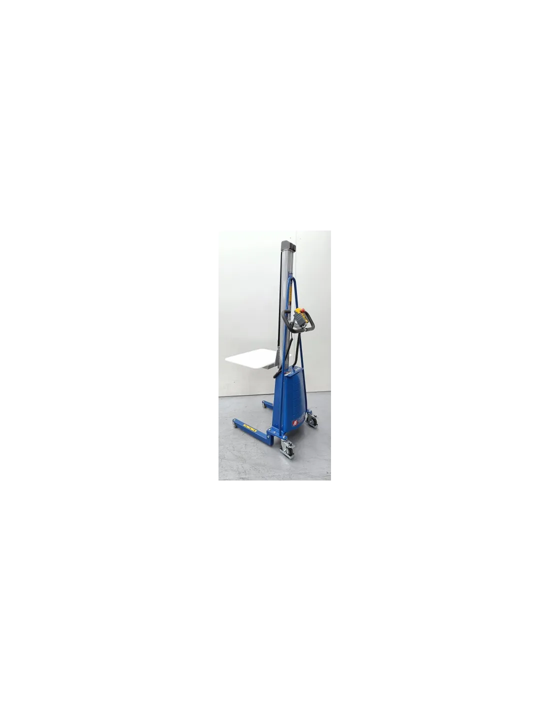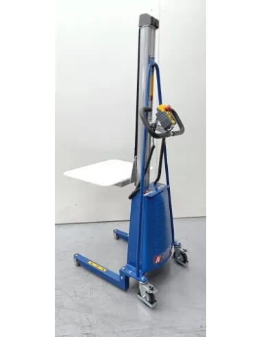 Apiladores ligero de elevación eléctrica, con base de nylon de 605 x 475 mm. Ideal para el transporte en almacén de cargas medias hasta 150 Kg empleado en hostelería, plantas industriales, almacenes, farmacias en la que se pueden levantar y transportar todo tipo de productos tales como cartones, piezas, cajas, bobinas, latas, sacos, cestas plásticas etc. con la finalidad de poder colocar estos productos en bobinas, máquinas, rolles, estanterías, etc. Todo ello con gran facilidad y maniobrabilidad. Cumpliendo siembre todas las medidas de seguridad y Marcado CE.