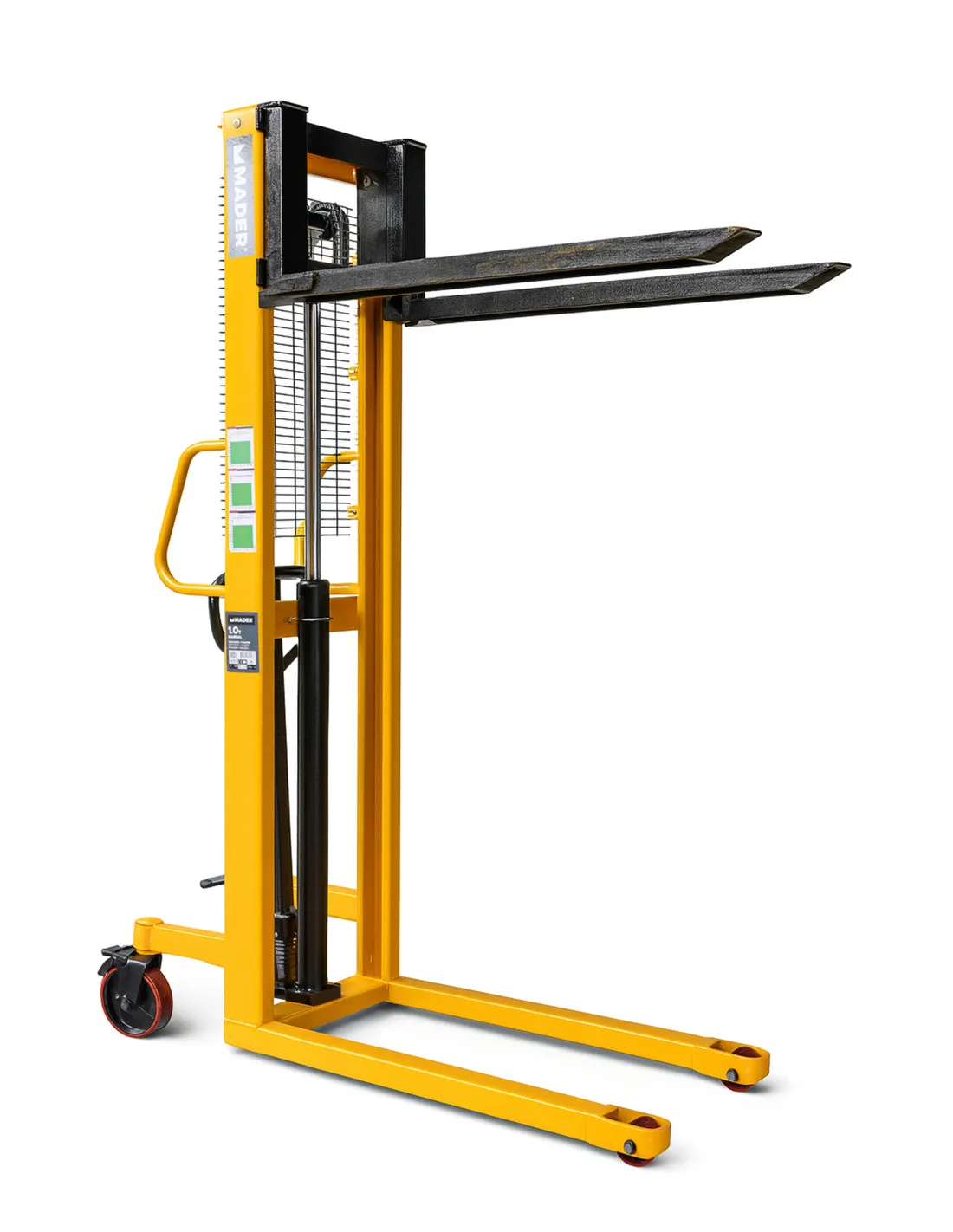 Eleva y transporta cargas pesadas con total seguridad. Este apilador manual de la marca Mader ofrece una elevación hidráulica de hasta 1600 mm y soporta hasta 1000 kg.Equipado con ruedas de poliuretano con freno, es la solución económica y fiable para la logística diaria en talleres y almacenes.