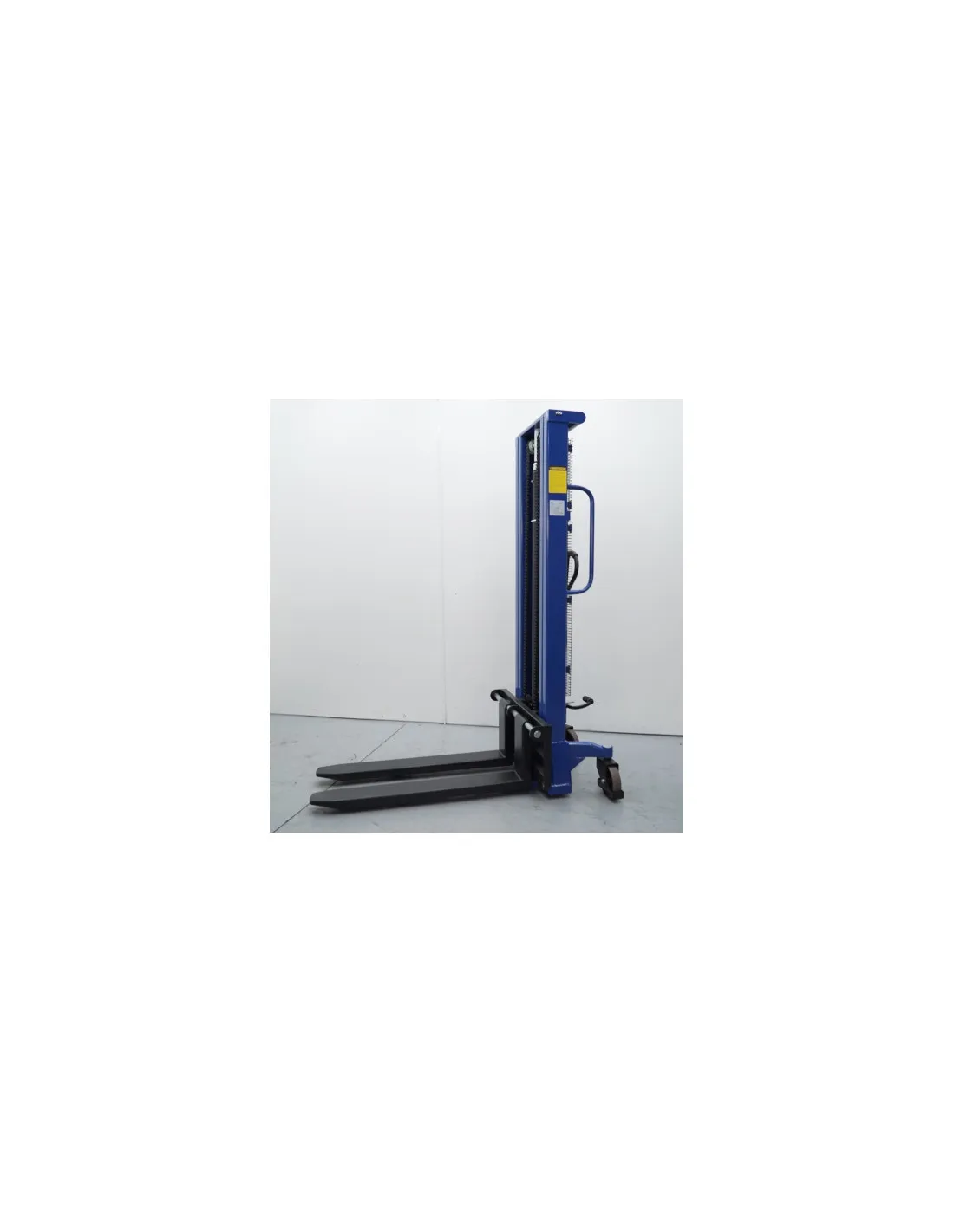 Apilador de elevación y traslación manual, uñas regulables, la solución más económica para la elevación de cargas hasta 1.000 Kg. Descenso controlado de cargas. Apto para zonas con espacio pequeños / medianos. Rejilla de seguridad. Válvula de sobrecarga de seguridad. Freno en las ruedas. Marcado CE.
