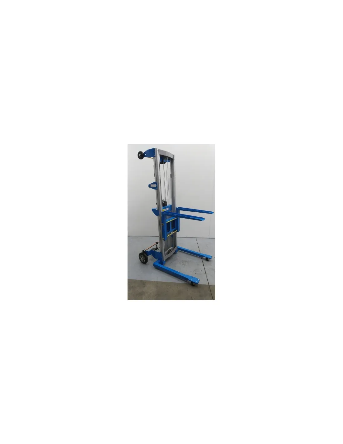 Apilador compacto fabricado en aluminio. muy resistente y ligero, especialmente diseñado para trabajos de carga y descarga de hasta 180 Kg y a una altura de 2,5 m o 3 m apto para la colocación de aire acondicionado, persianas, etc. Apilador aluminioLa solución rápida y segura para sus necesidades en altura. Elevador resistente y manejado con gran facilidad por una sola persona para elevar, descender o desplazar cargas. Se adapta a todas las situaciones, cumple con todas las normativas de seguridad, desmontable para llevar en furgonetas. Marcado CE.