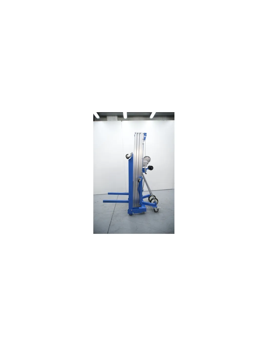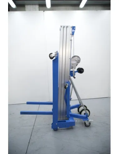 Apilador compacto fabricado en aluminio. muy resistente y ligero, especialmente diseñado para trabajos de carga y descarga de hasta 300 Kg y a una altura de 5 m apto para la colocación de aire acondicionado, persianas, etc. La solución rápida y segura para sus necesidades en altura. Elevador resistente y manejado con gran facilidad por una sola persona para elevar, descender o desplazar cargas. Se adapta a todas las situaciones, cumple con todas las normativas de seguridad, desmontable para llevar en furgonetas. Marcado CE.