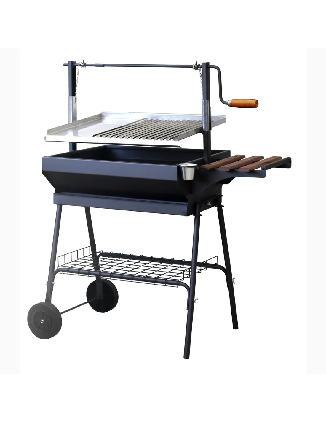 Barbacoa con elevador reversible de manivela para la parrilla.