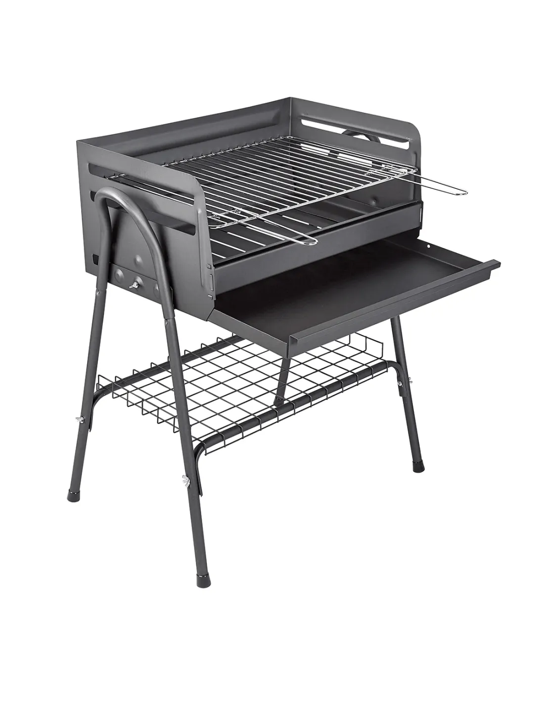 Esta barbacoa, además, cuenta con una bandeja inferior para colocar alimentos o utensilios.