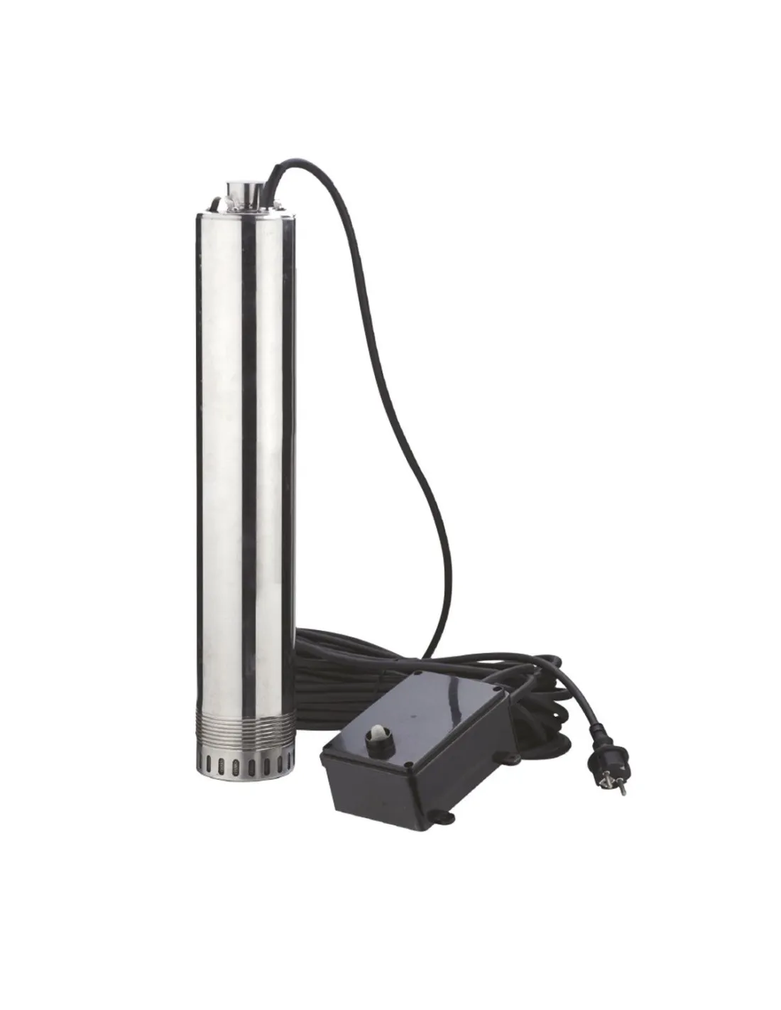 Electrobomba sumergible Kuril desarrollada para aguas limpias. KSP045 está equipada con un motor de alto rendimiento de 900 W, cable de 10 metros y boca de 1”. Modelo que permite desplazar hasta 4500 litros por hora y presenta una altura máxima de bombeo de 60 m. Esta electrobomba puede sumergirse hasta 15 m.