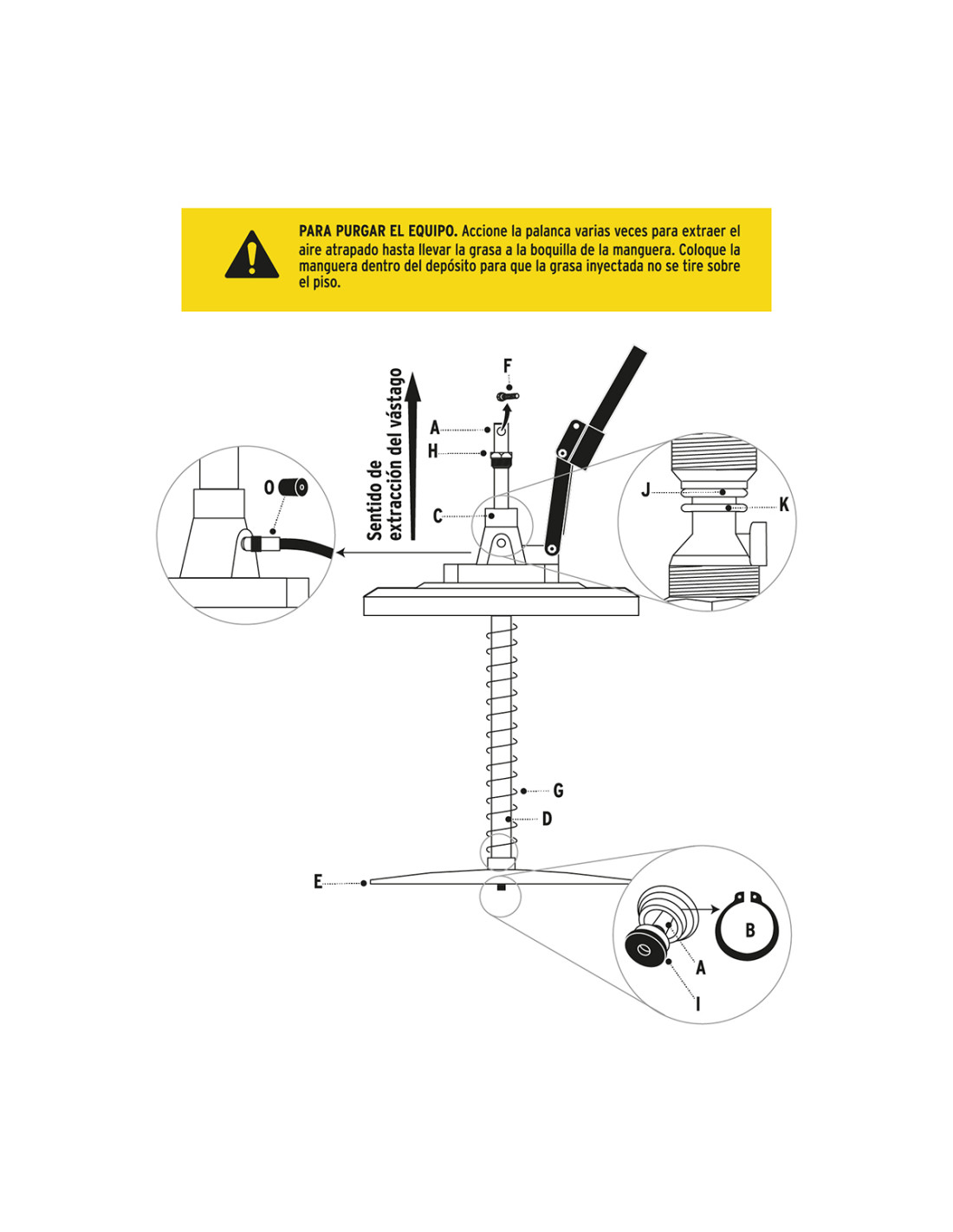 Bomba inyectora de grasa con cuerpo de acero, boquilla de aluminio, manguera de hule, ruedas para fácil transporte, resorte antitorsión, mango ergonómico con cubierta antideslizante y broches herméticos.