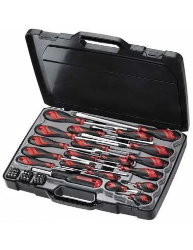 El Juego de Destornilladores para tornillos ranurados modelo MD9053N de Tengtools está compuesto por 53 piezas. Se entrega en maletín.