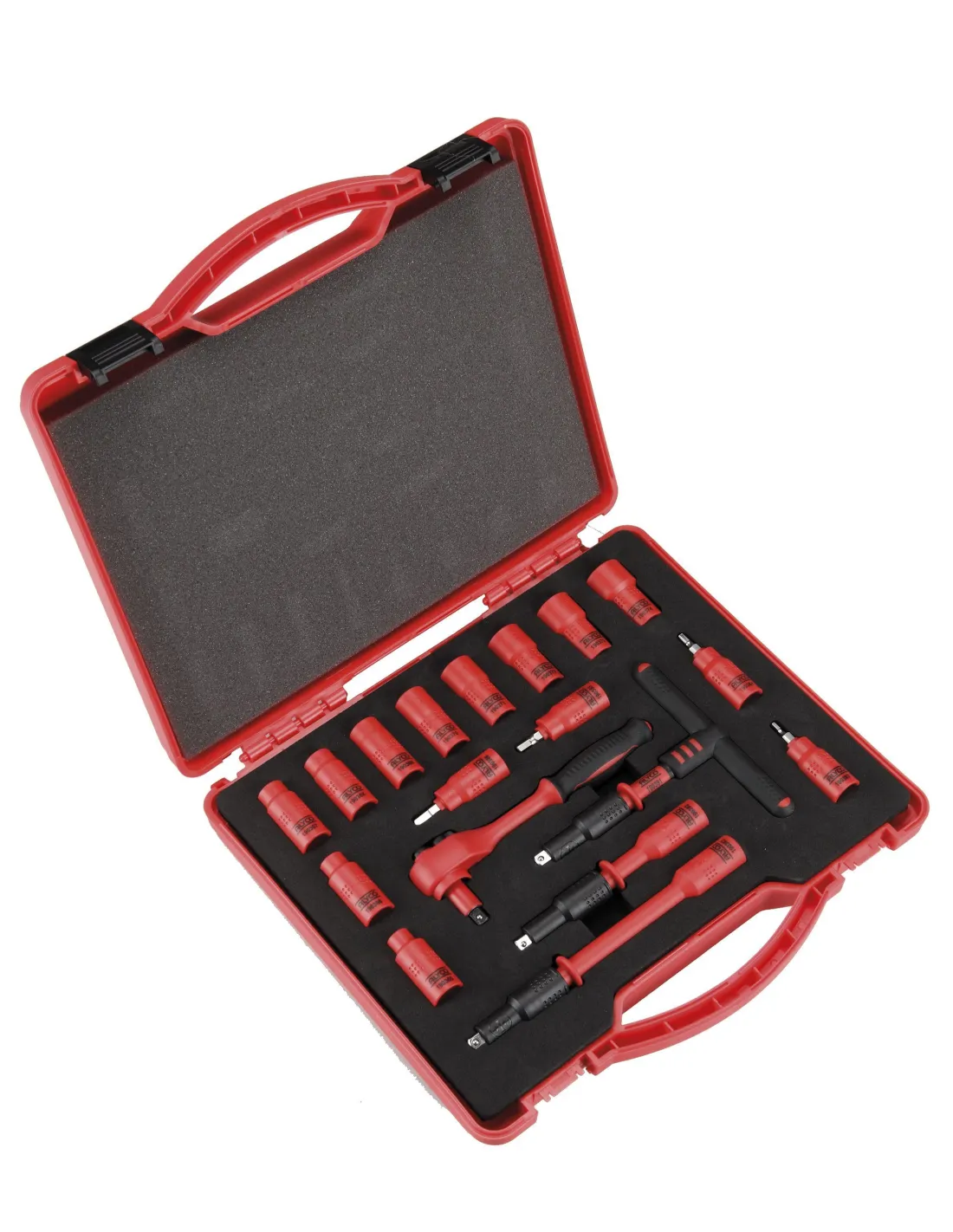 Este juego de vasos y accesorios está compuesto por elementos aislados que cumplen la normativa VDE y la norma EN60900. Están indicadas para ser utilizadas en trabajos bajo tensión hasta 1000V en corriente alterna ó 1500V en corriente continua.
