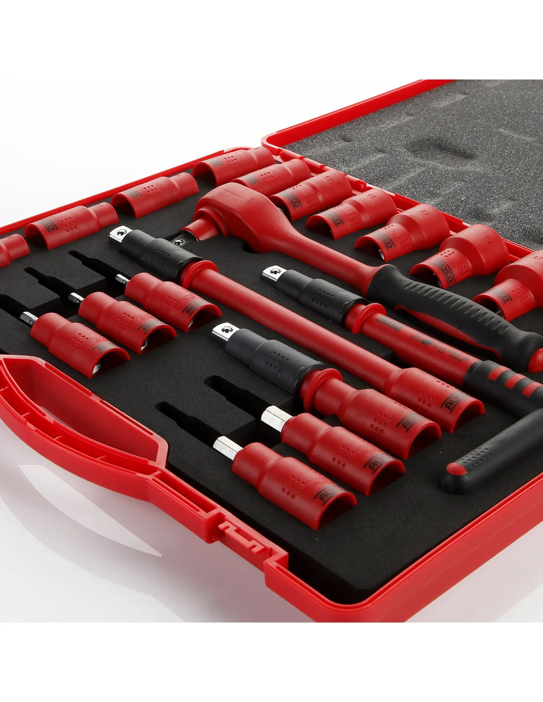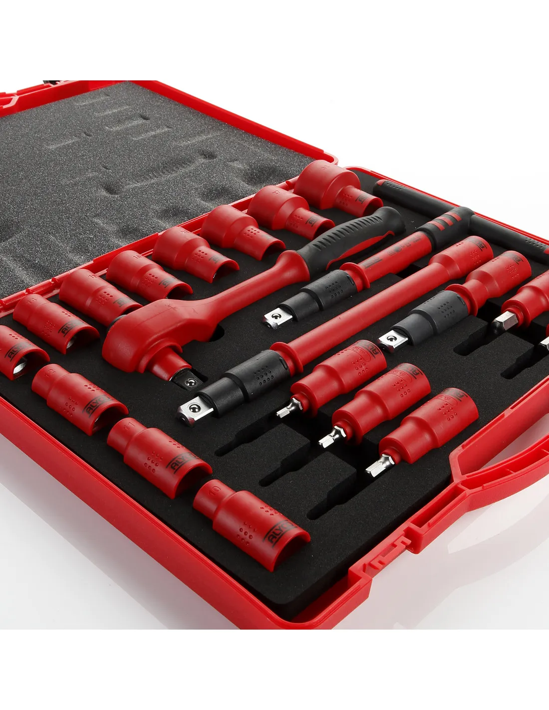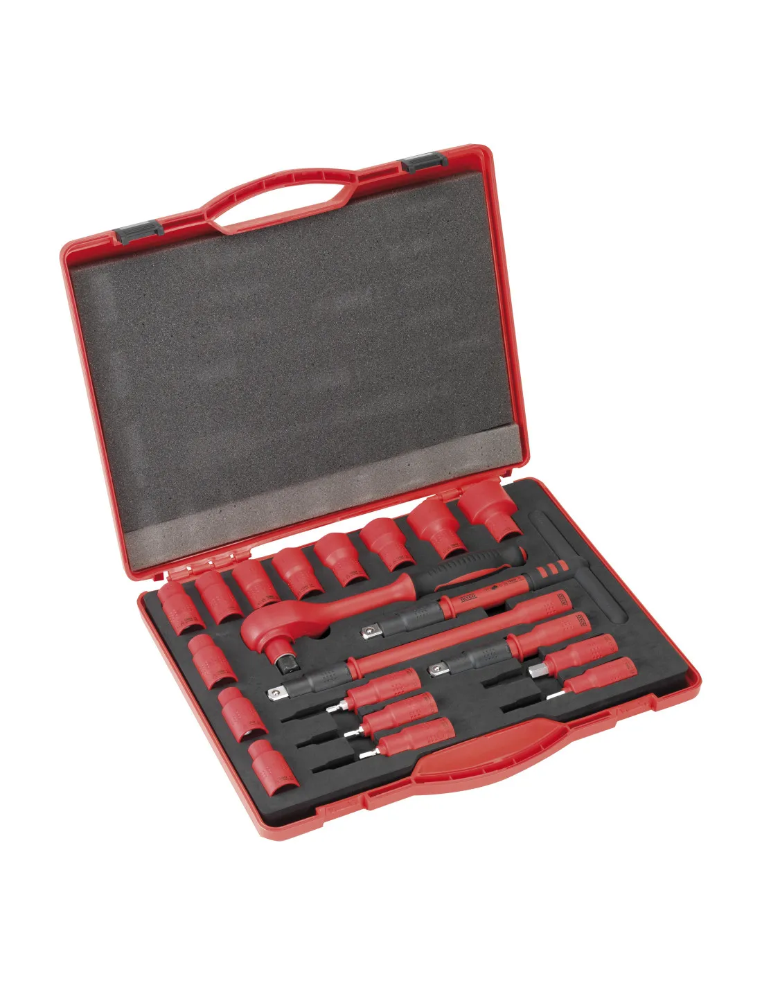 Este juego de vasos y accesorios está compuesto por elementos aislados que cumplen la normativa VDE y la norma EN60900. Están indicadas para ser utilizadas en trabajos bajo tensión hasta 1000V en corriente alterna ó 1500V en corriente continua.