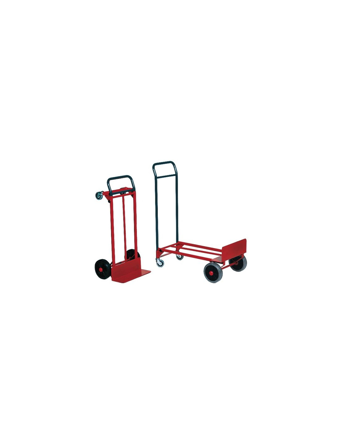 Carro convertible fácilmente en plataforma con unas dimensiones de 830 x 360. Fabricado en tubo de acero muy resistente. Dos ruedas de goma maciza y dos de goma gris. Capacidad de carga 150Kg.