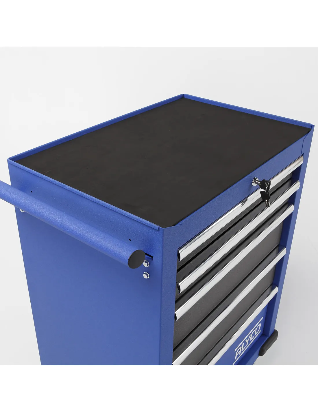 Incluye caucho protector en la superficie superior del carro y en la base de los cajones, evitando arañazos y corrosión.