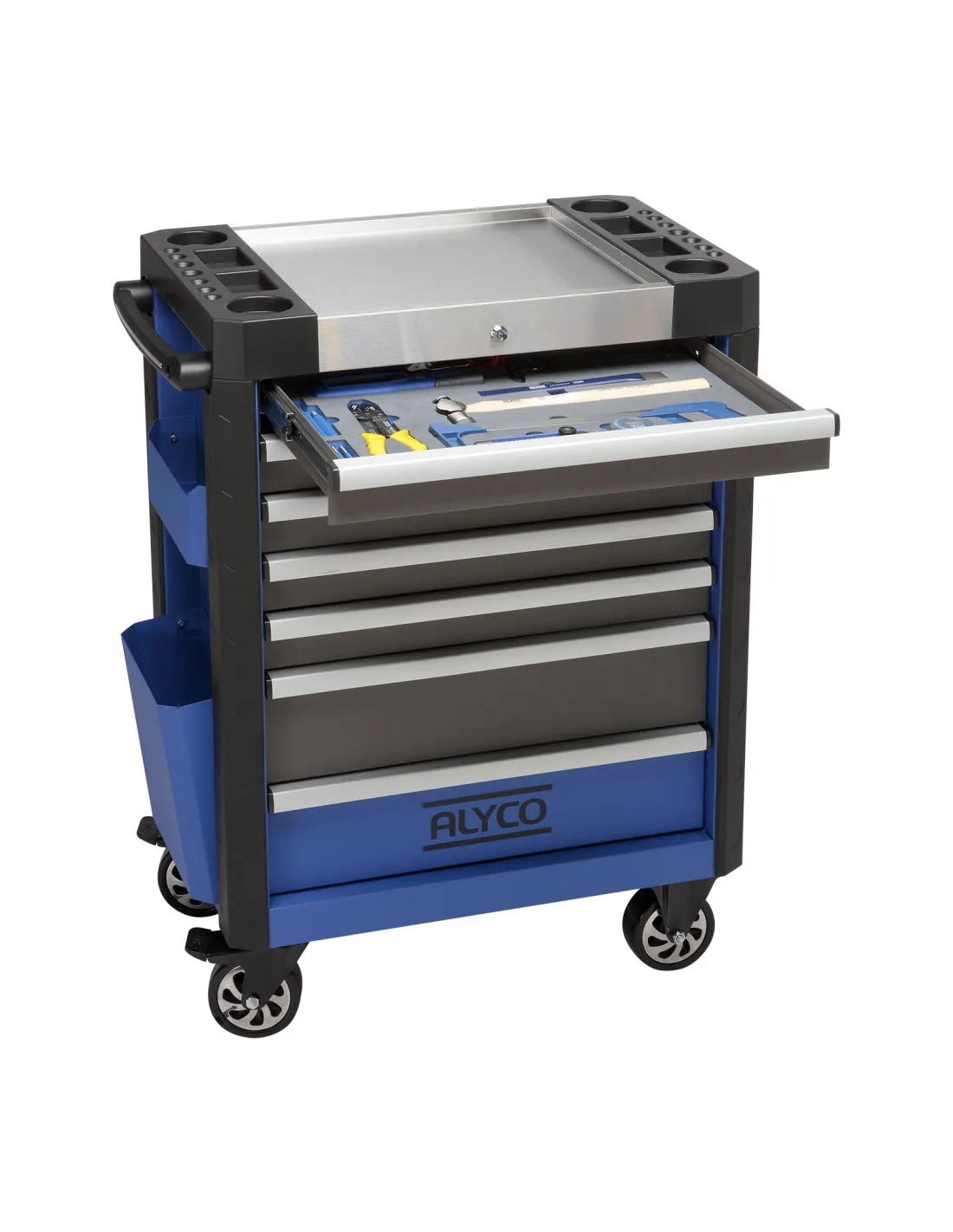 Surtido de 80 herramientas Alyco distribuidas en 5 módulos diferentes para una perfecta organización y custodia.