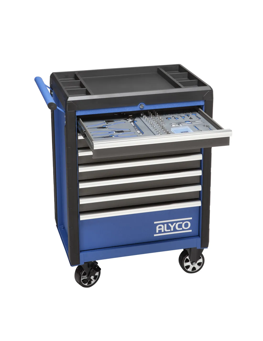 Surtido muy completo de 177 herramientas Alyco distribuidas en 9 módulos diferentes para una perfecta organización y custodia.
