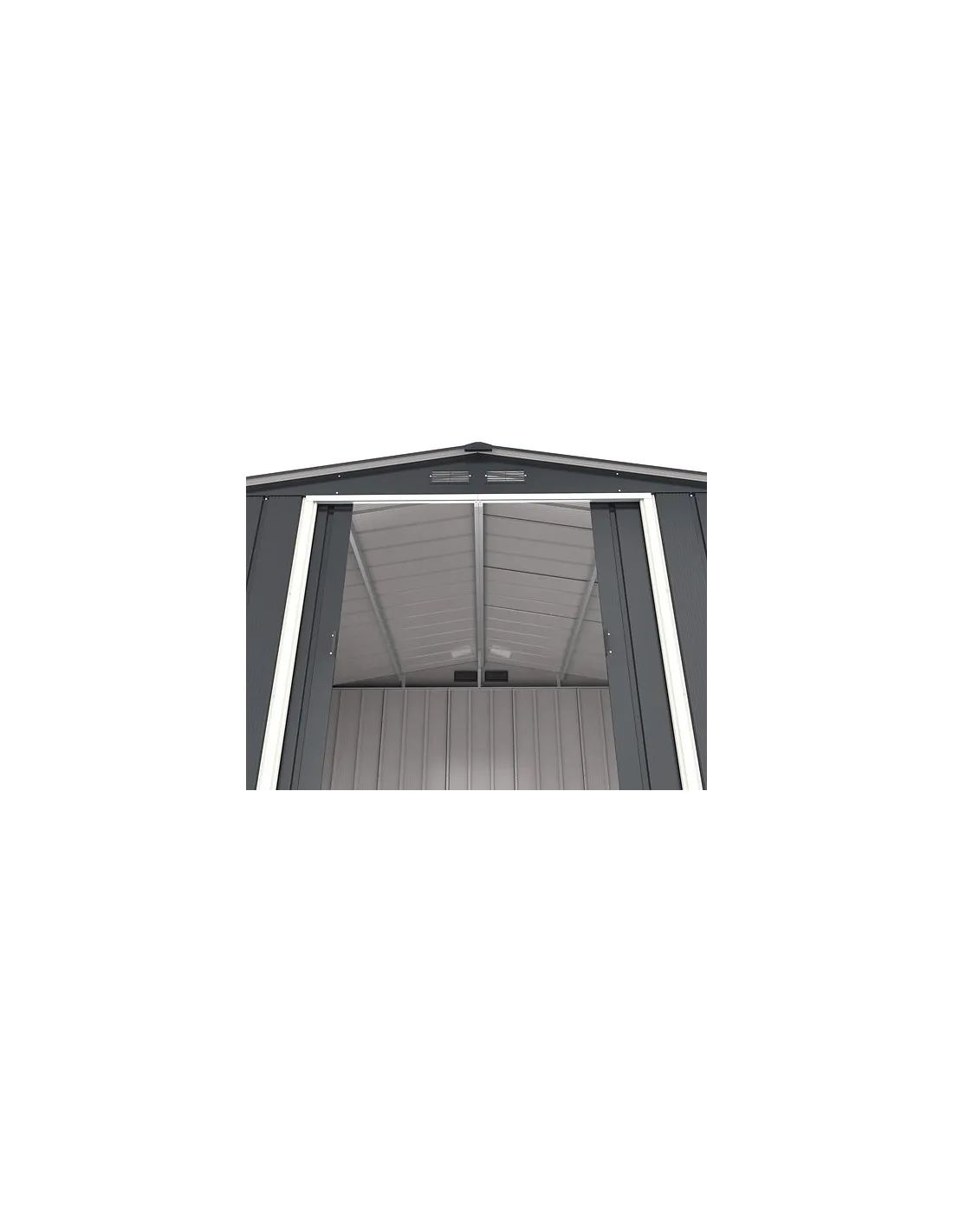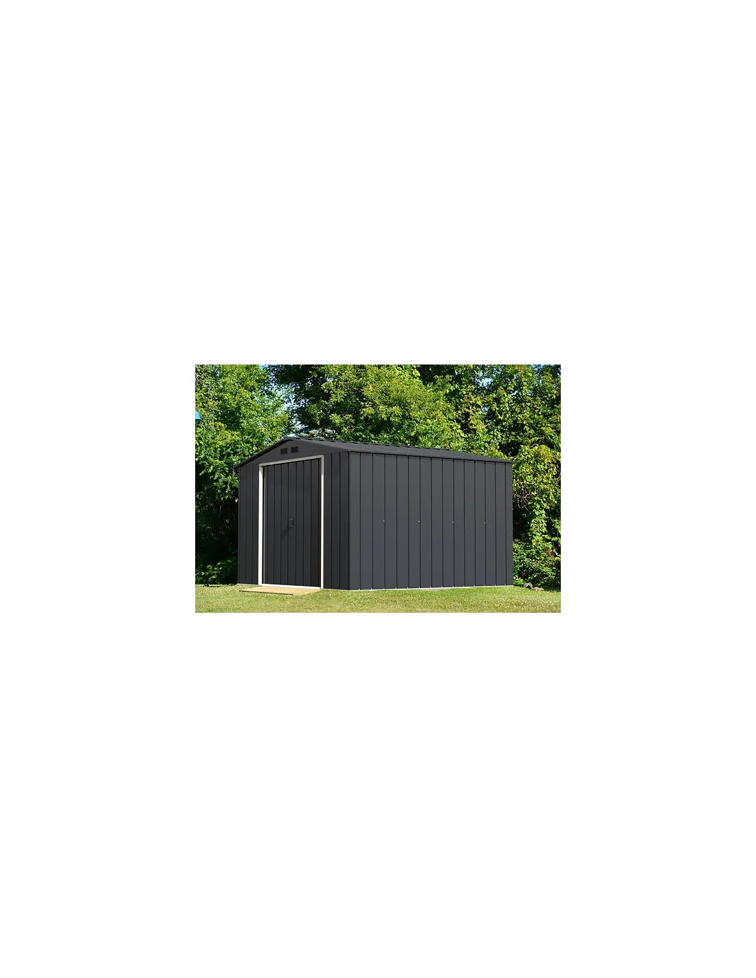 Caseta de jardín de metal ECO JAVEA de color gris antracita con unas medidas 3.023 X 3.221 X 1.961 mm. y una superficie: 9,73 m2. Esta enfocada a un presupuesto más ajustado, pero sin renunciar a la calidad. Son galvanizadas y pintadas electrostáticamente, fácil montaje, con paredes paneladas, tratamiento anticorrosión y un atractivo acabado que se adaptará al entorno.