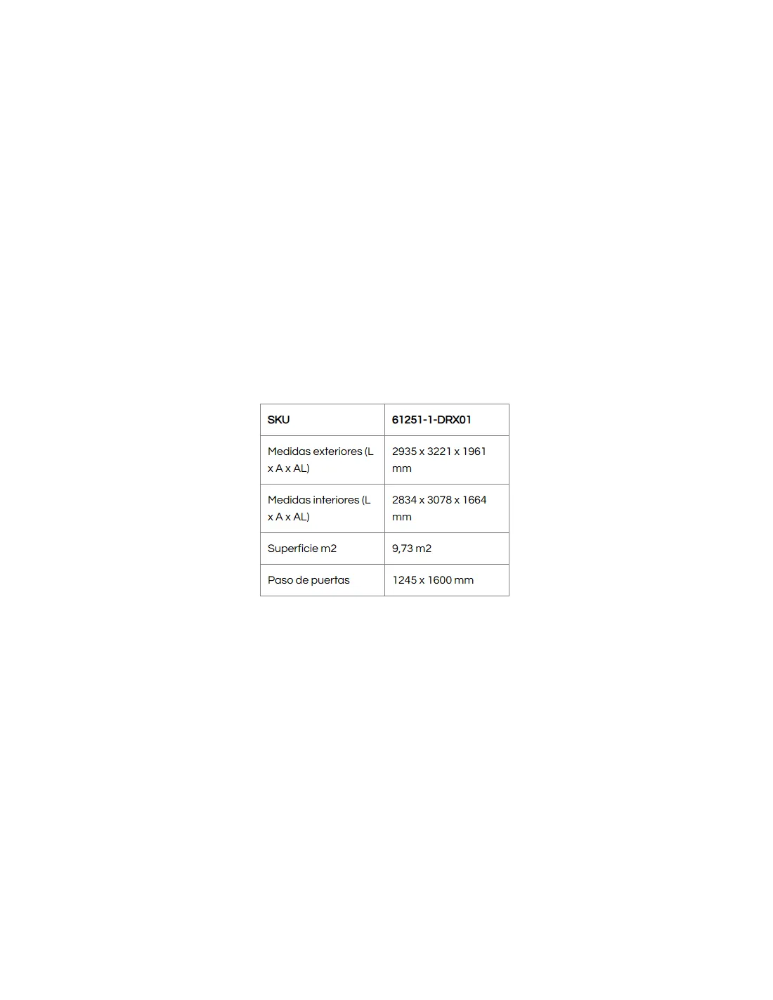 Medidas exteriores (L x A x AL): 2935 x 3221 x 1961 mm