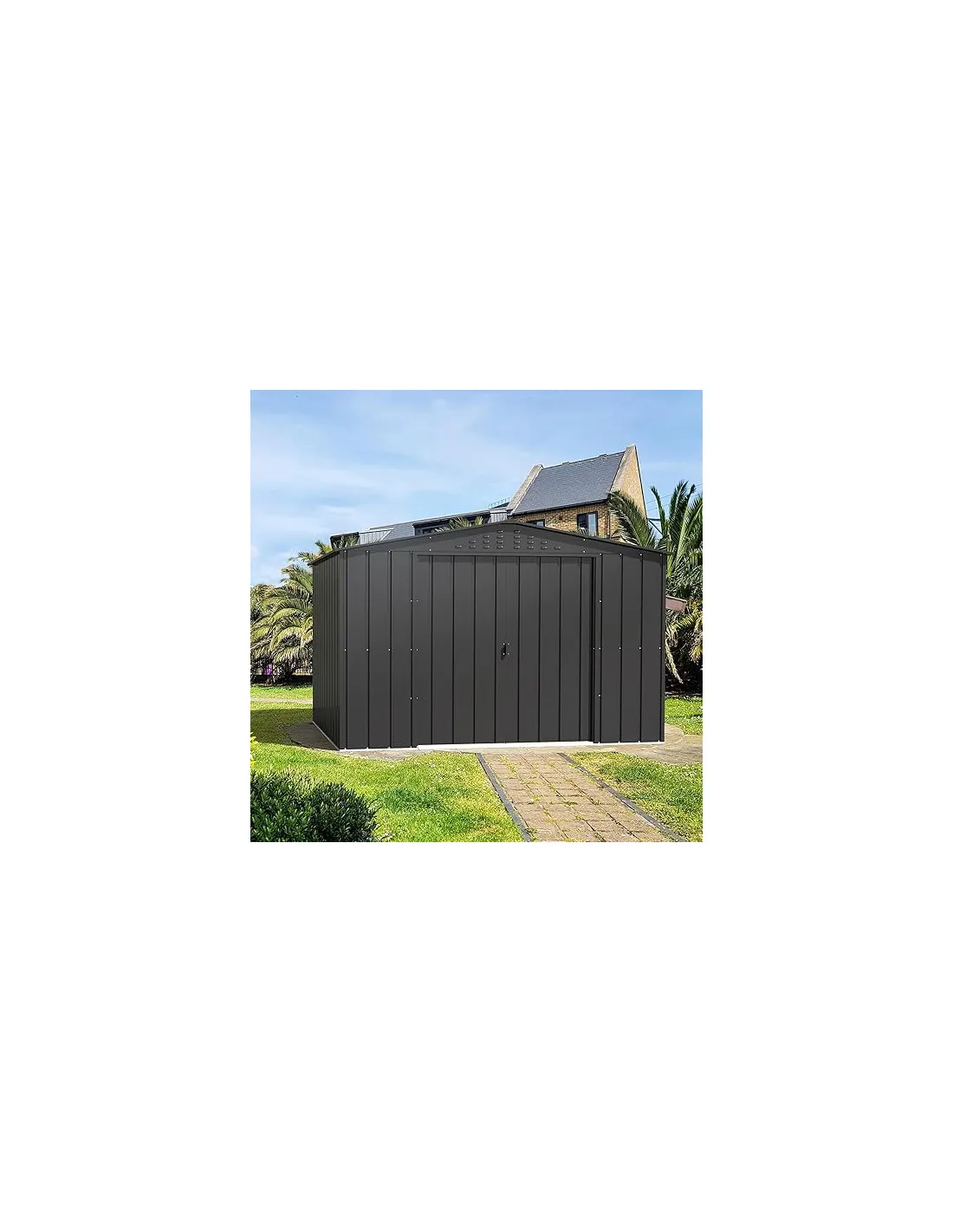 Además, gracias a sus dimensiones (2.433 x 3.218 x 2.093 mm.), es perfectamente amoldable a cualquier espacio de su jardín. Dispone de dobles puertas correderas 1.245 x 1.730 mm.