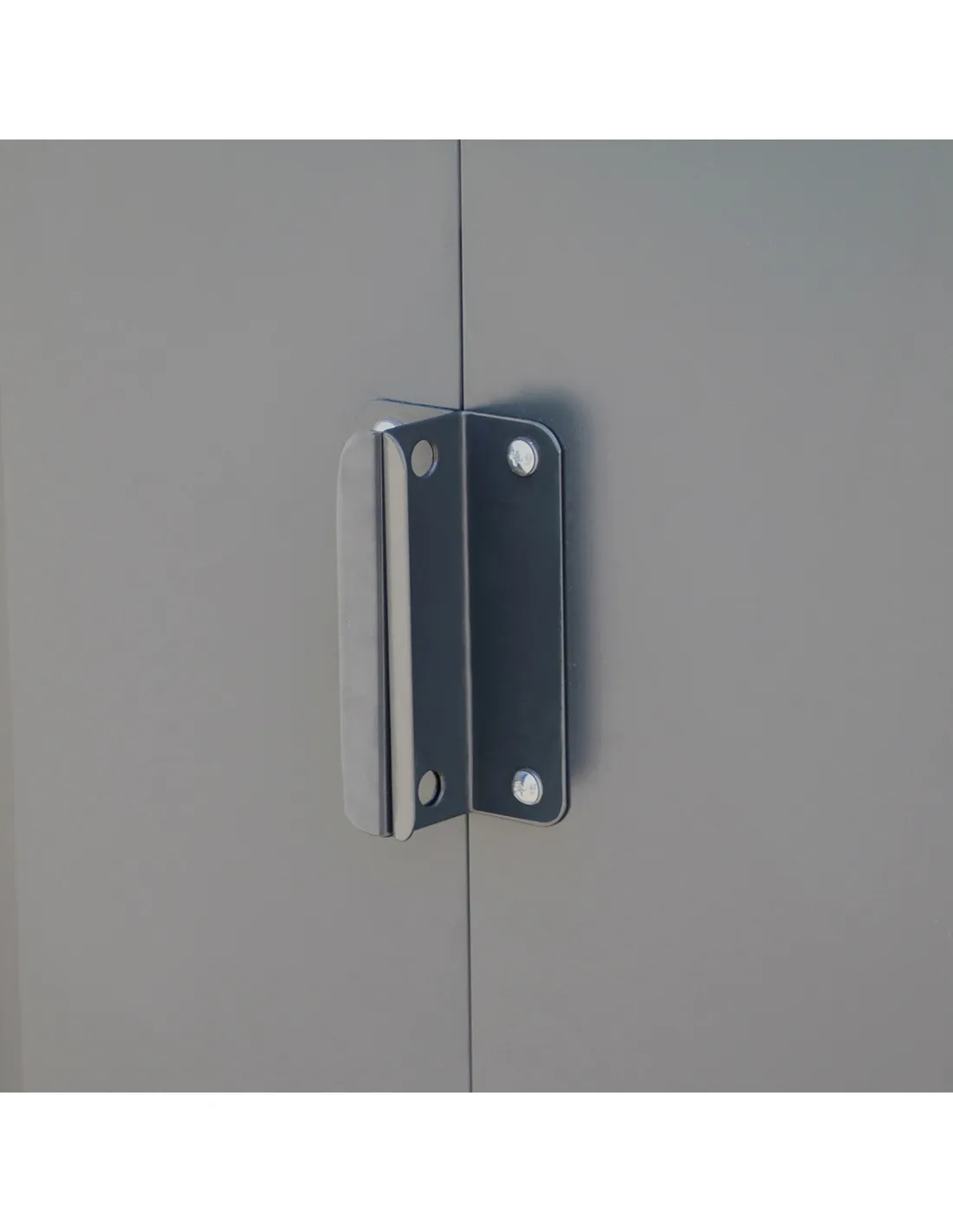 Se recomienda que la instalación del producto se realice sobre una base lisa de hormigón con al menos 10 cm. de grosor. Se accede al interior de la caseta a través de una doble puerta deslizante, cuya altura es de 1,73 m.