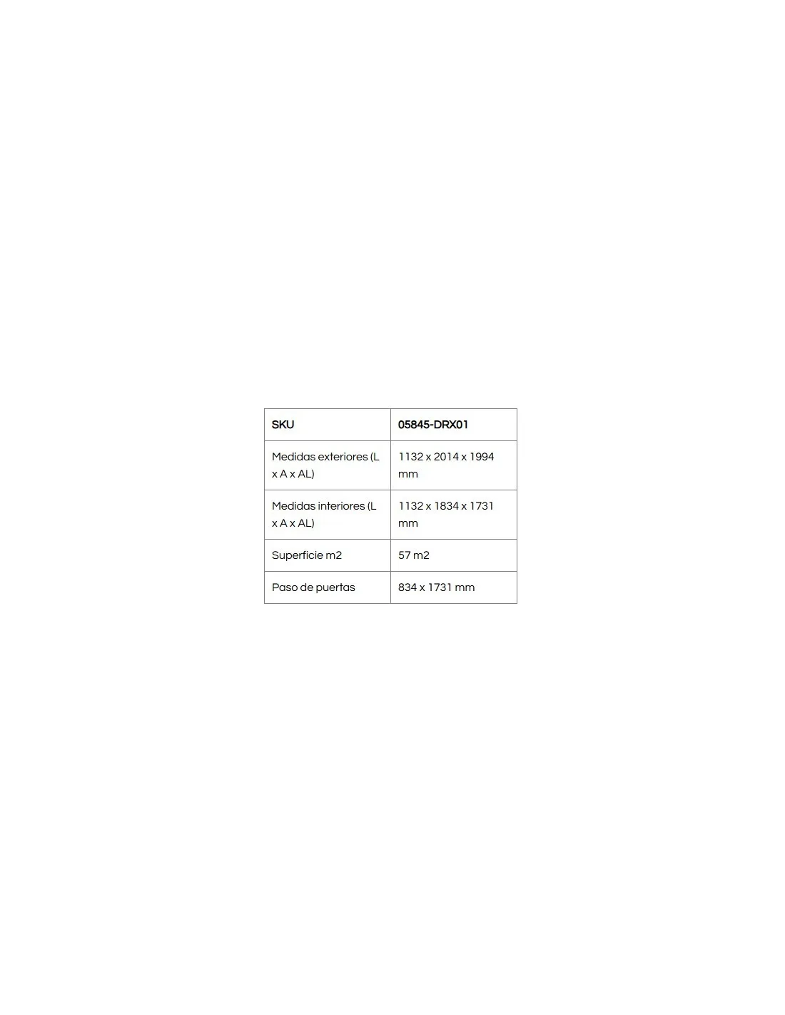 Medidas exteriores (L x A x AL): 1132 x 2014 x 1994 mm