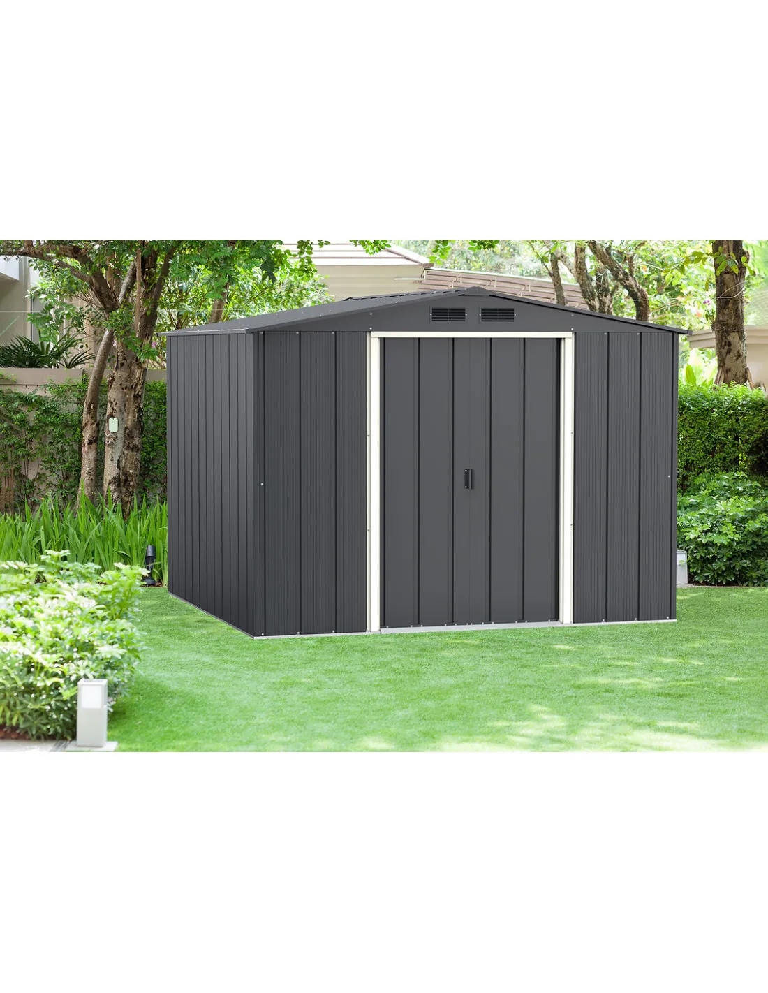 Caseta de jardín de metal Eco Calpe 8X8 esta enfocada a un presupuesto más ajustado, pero sin renunciar a la calidad. Son galvanizadas y pintadas electrostáticamente, fácil montaje, con paredes paneladas, tratamiento anticorrosión y un atractivo acabado que se adaptará al entorno.