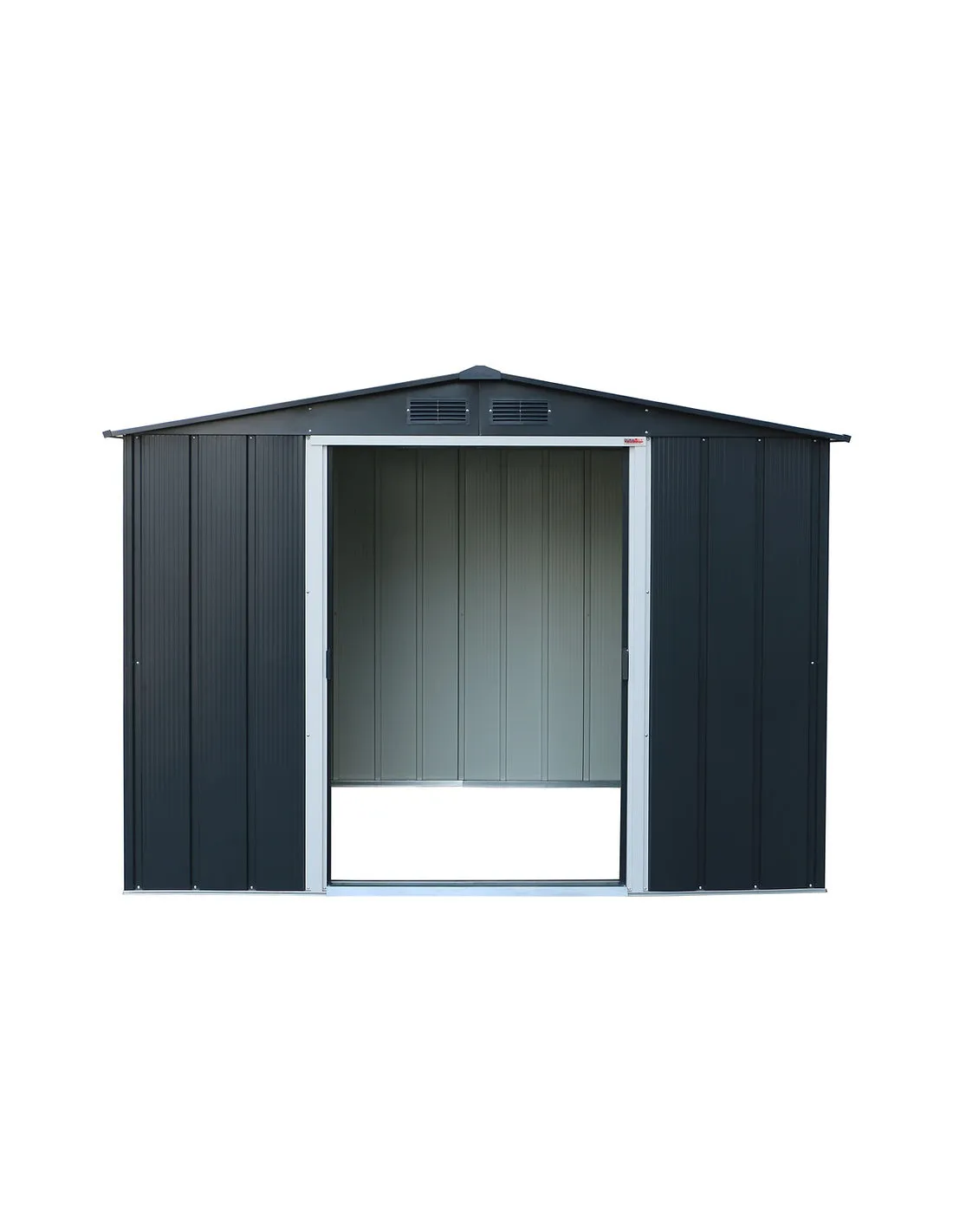 Se accede a la caseta a través desde su doble puerta corredera que permite aprovechar mejor el espacio interior. Impermeable.