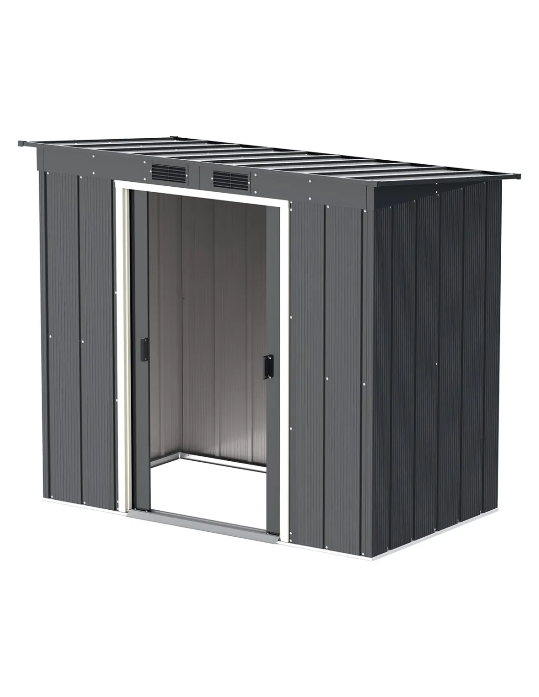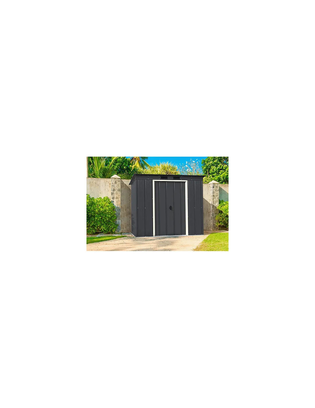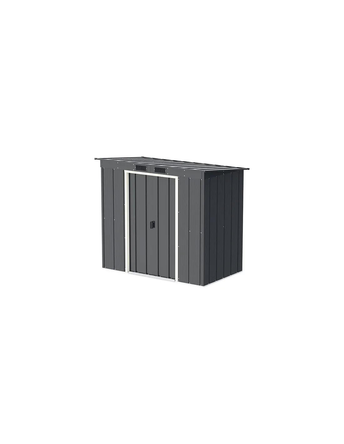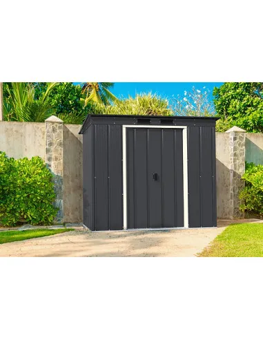 Caseta de metal "ECO PENTROOF 6X4" de color antracita esta enfocada a un presupuesto más ajustado, pero sin renunciar a la calidad. Elegante color gris antracita, están confeccionadas en sus paneles de acero de primer uso de máxima calidad, corrugado compacto de alta resistencia en panel de grosor de 0,33 mm. Aportando máxima solidez y seguridad. Son galvanizadas y pintadas electrostáticamente, fácil montaje, con paredes paneladas, tratamiento anticorrosión y un atractivo acabado que se adaptará al entorno.