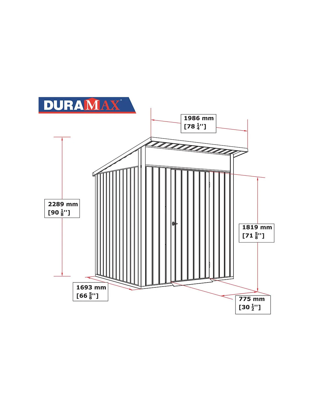 Cómodo y versátil cobertizo metálico Duramax, indicado para jardines y terrazas pequeñas. Este producto se recomienda tanto para organizar de herramientas como para ubicar un pequeño taller o espacios de ocio.