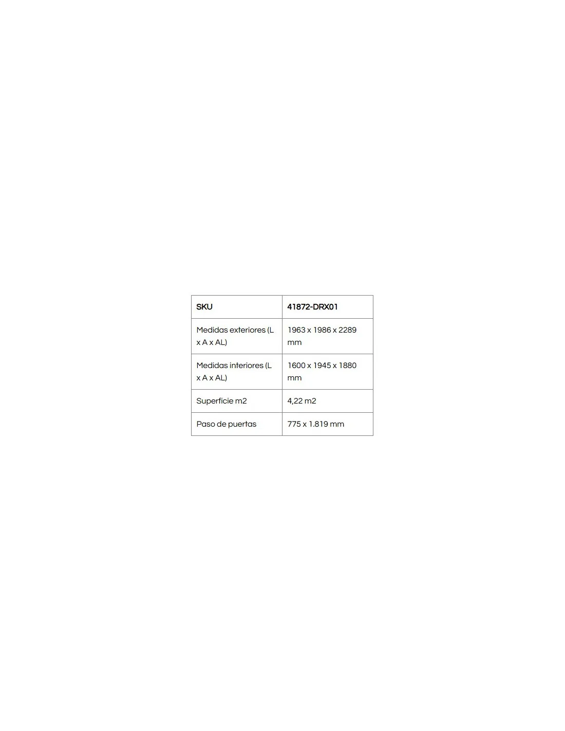 Medidas exteriores (L x A x AL): 1963 x 1986 x 2289 mm