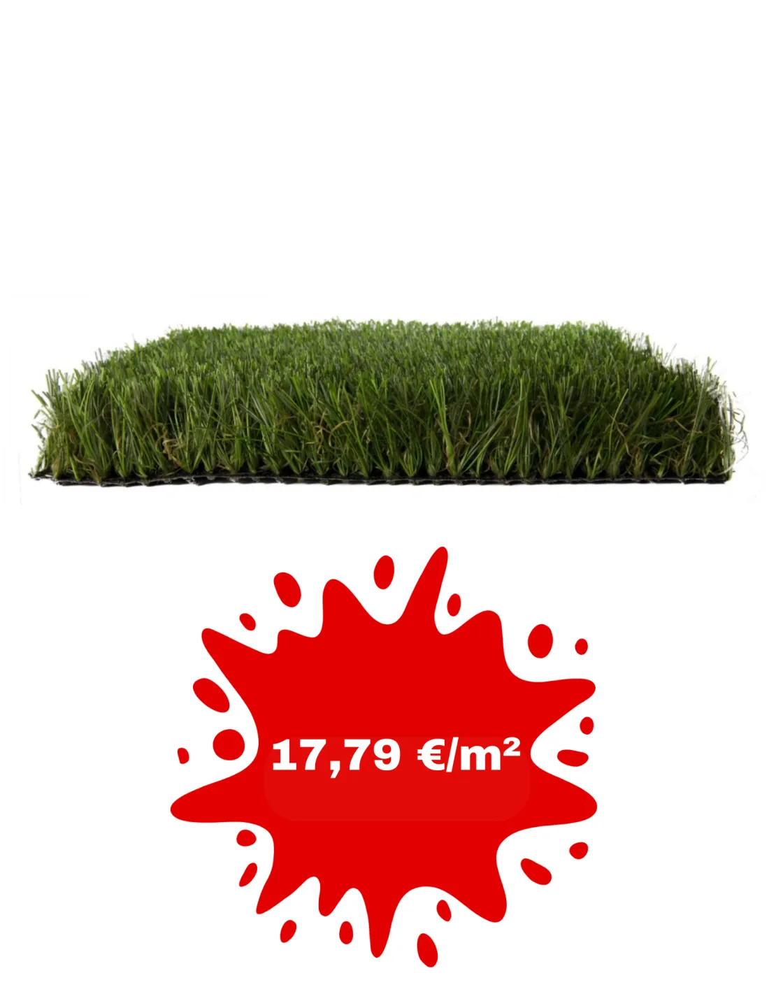 - Backing primario: Doble capa de polipropileno estabilizada resistente a rayos UV + fleece para una mayor estabilidad dimensional de 250 gr/m2 (+/- 10%)