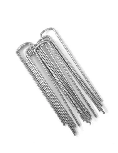 Grapas galvanizadas con horquilla fabricadas a partir de alambre acerado en frío y galvanizado por inmersión caliente para sujeción del césped artificial.