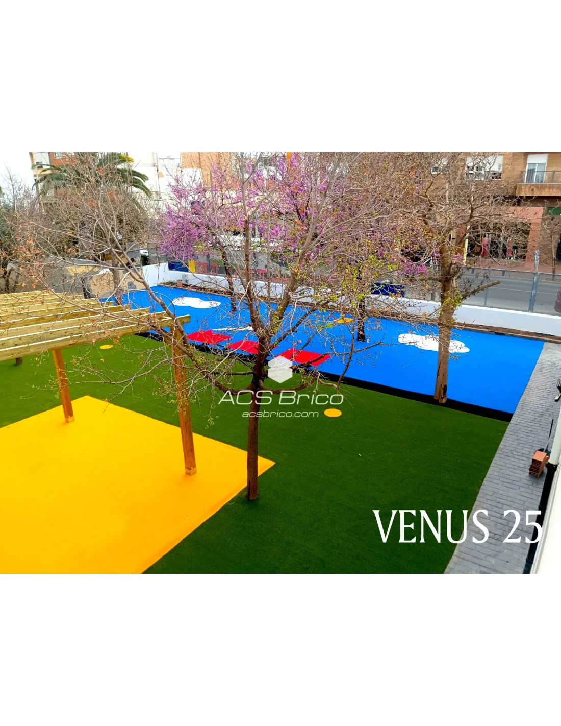 Un césped artificial ANTIESTÁTICO de alta calidad. Esto no solo garantiza una superficie resistente y cómoda, sino que también ofrece un nivel adicional de seguridad.