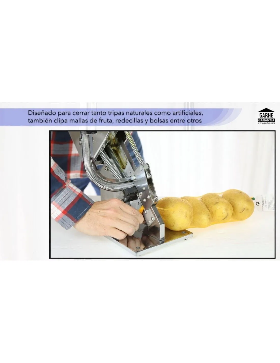 Diseñada para cerrar tanto tripas naturales como artificiales, también clipa mallas de fruta. redecillas y bolsas entre otros.