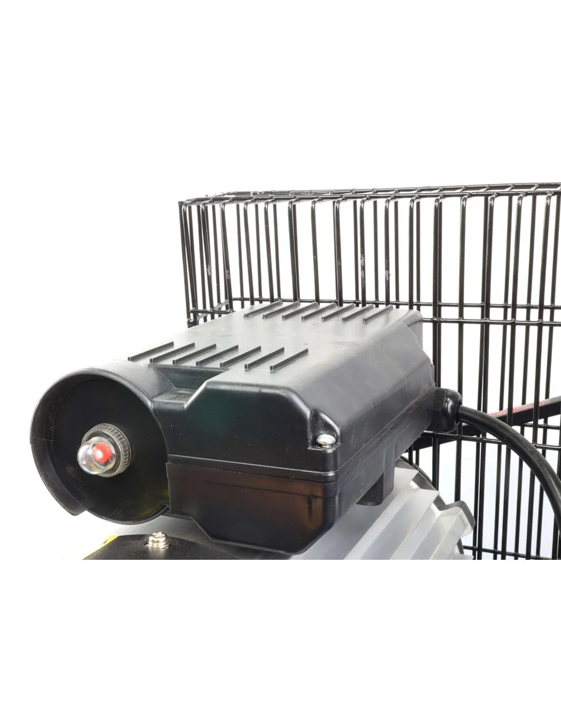 El compresor de aire neumático 37188 de SAURIUM tiene una capacidad de depósito de 100 litros y es adecuado para darle un uso industrial o taller. Dispone de presión máxima de 10 bares, tres ruedas y asa para facilitar su transporte y una potencia de motor de 3cv/230V.