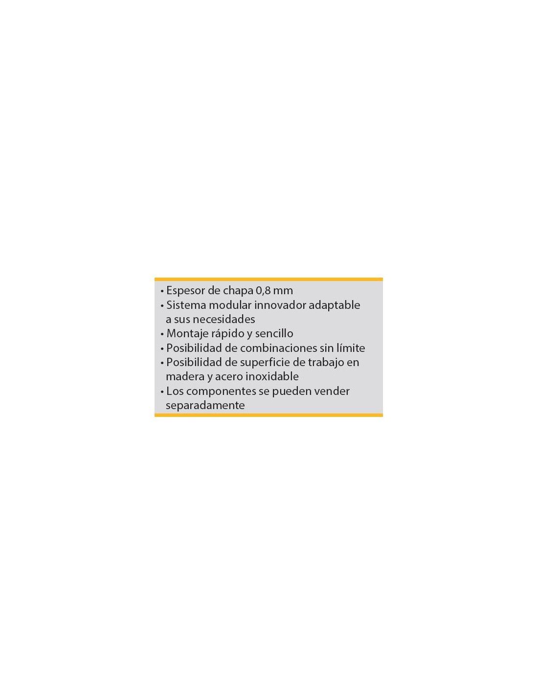 - Posibilidad de superficie de trabajo en madera (192839) o en acero inoxidable (192838).