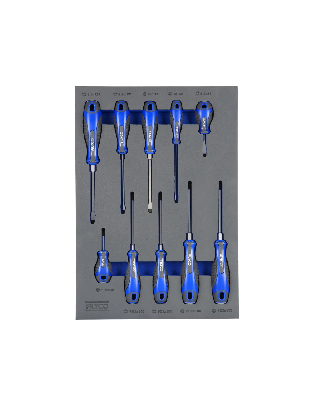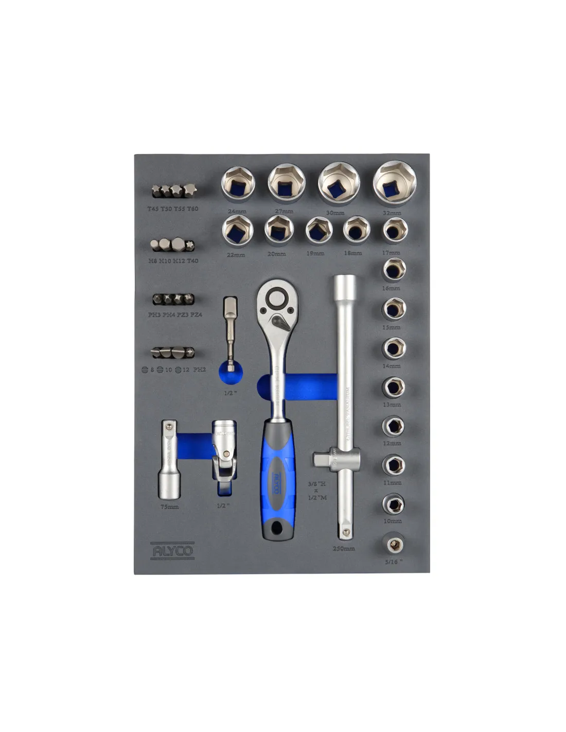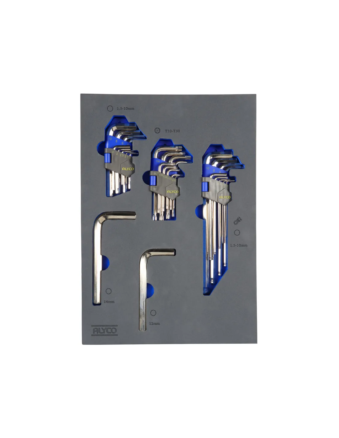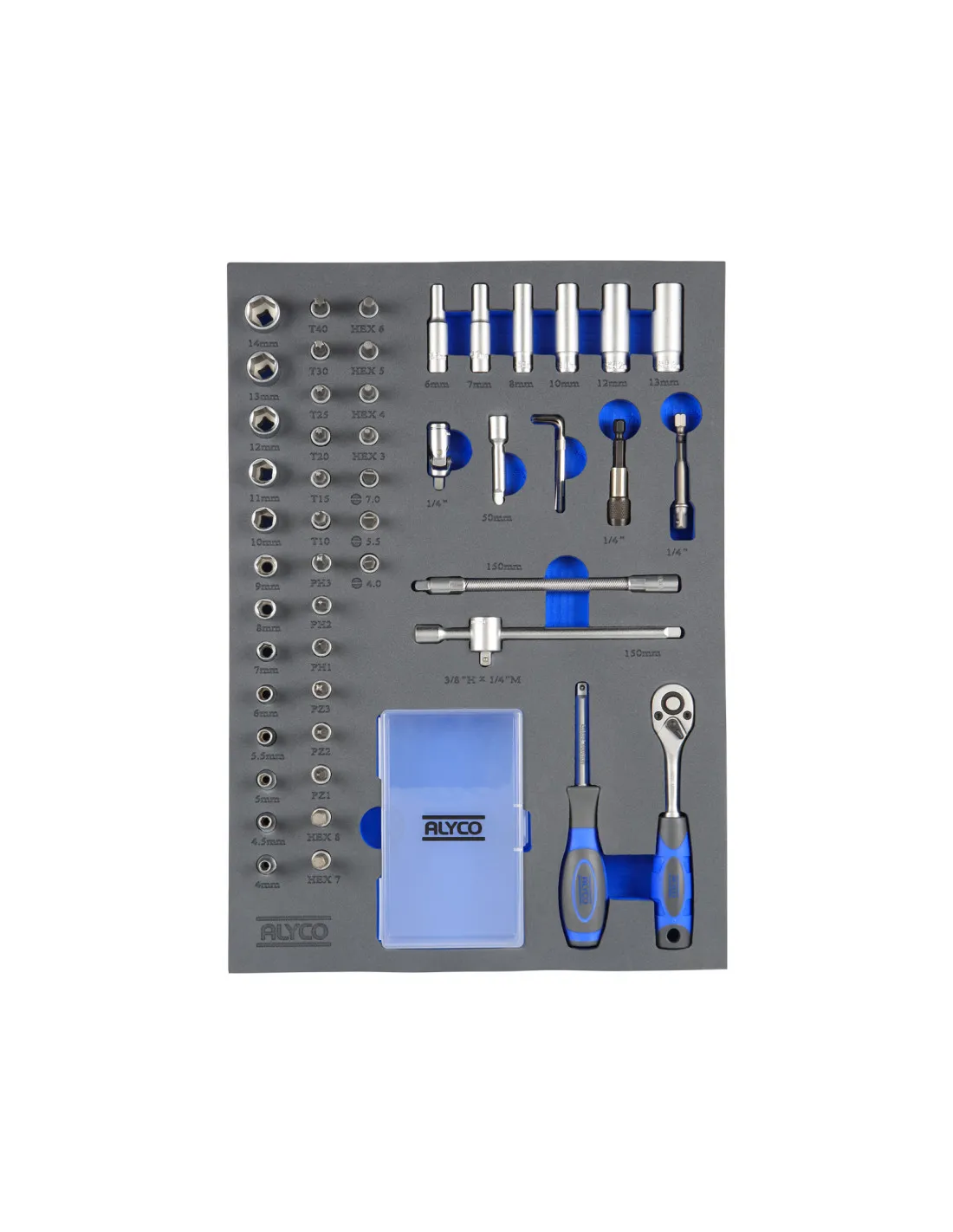 Ajustable perfectamente a la caja modular de los módulos de herramientas Alyco, que a su vez se ajustan a los cajones de carros de herramientas.
