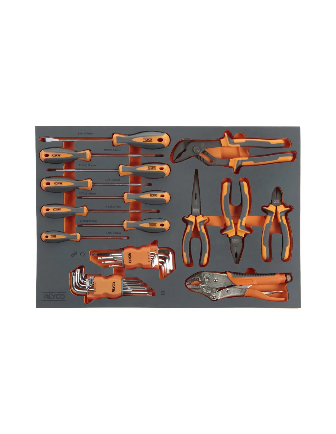 Ajustable perfectamente a la caja modular de los módulos de herramientas Alyco, que a su vez se ajustan a los cajones de carros de herramientas.