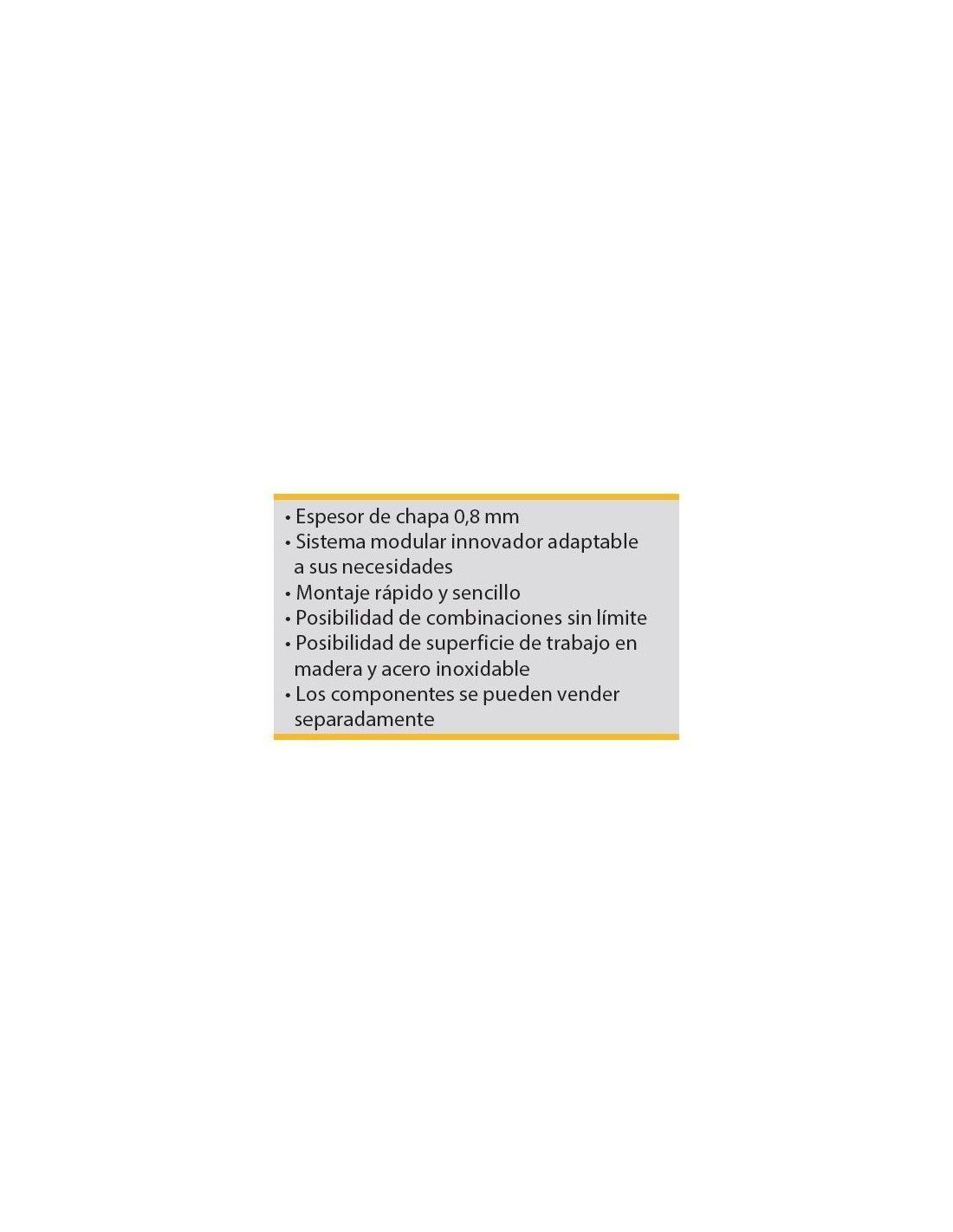- Posibilidad de superficie de trabajo en madera o en acero inoxidable.