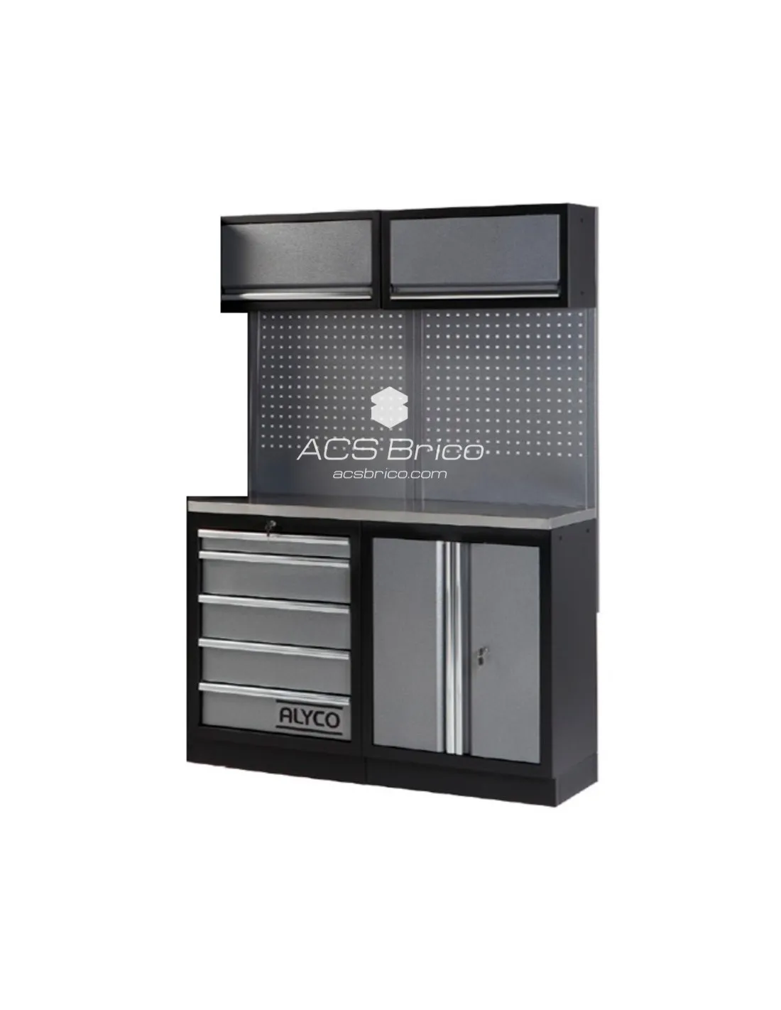 CONJUNTO TALLER MODULAR DE 2 MÓDULOS CON BASE DE TRABAJO DE ACERO INOXIDABLE ALYCO 199046