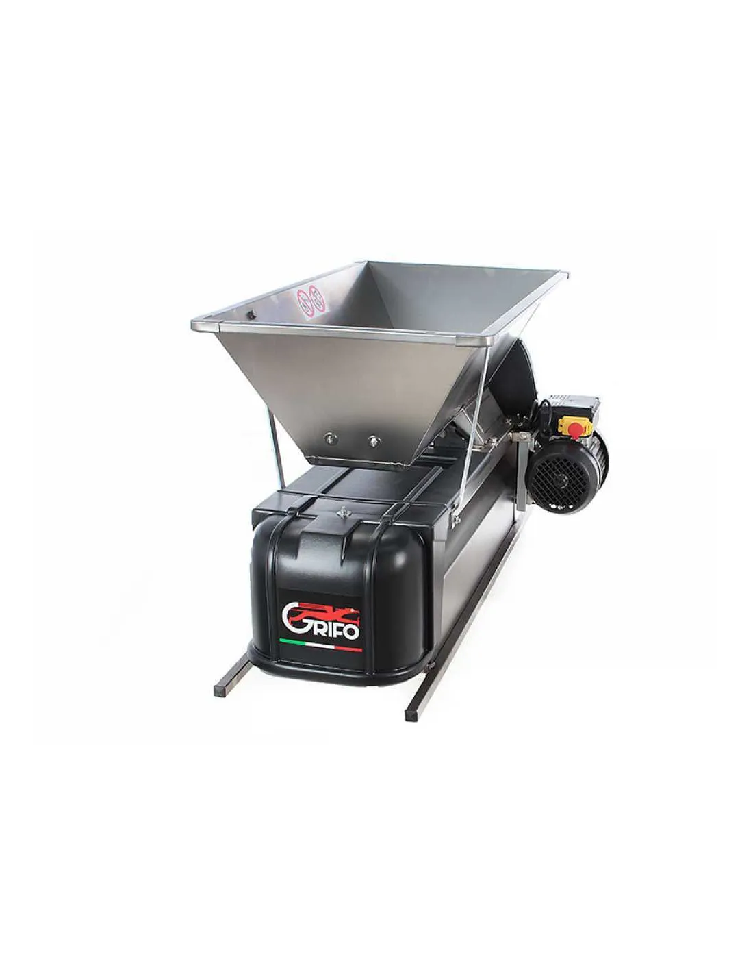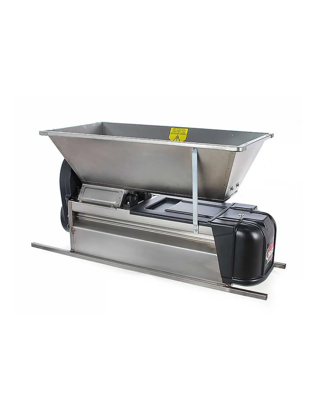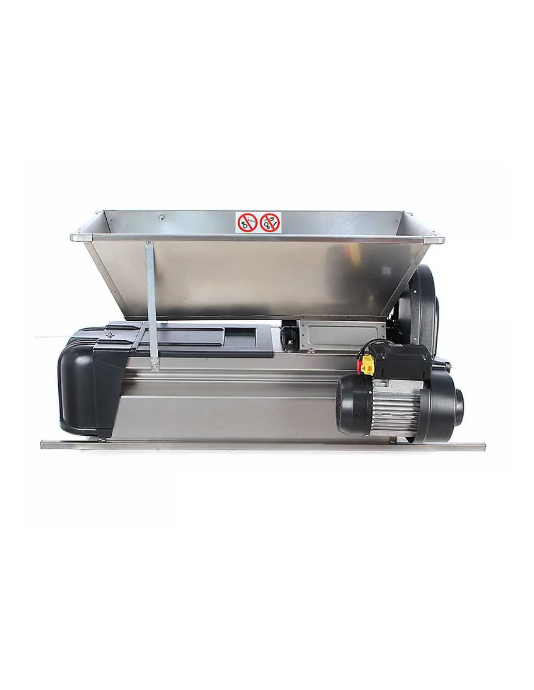 Despalilladora de uva monofásica con elevada capacidad de producción de 1000 a 1500 kg de uva. Esta estrujadora de uva cuanta con una tolva de abertura de 900x500 mm.