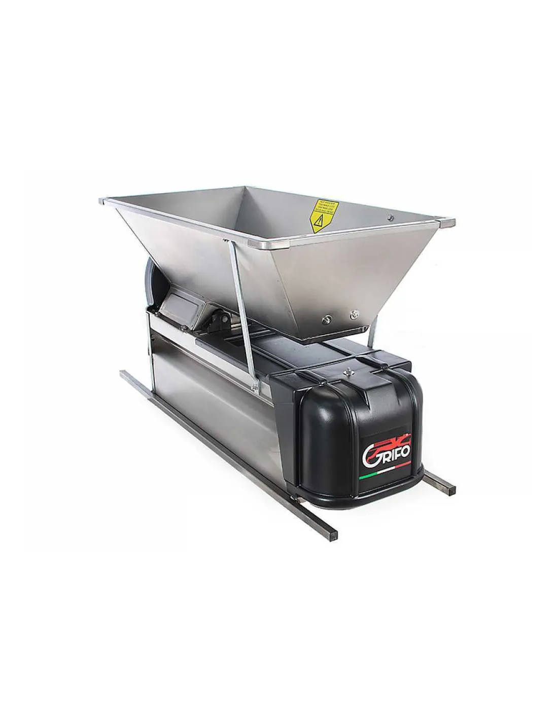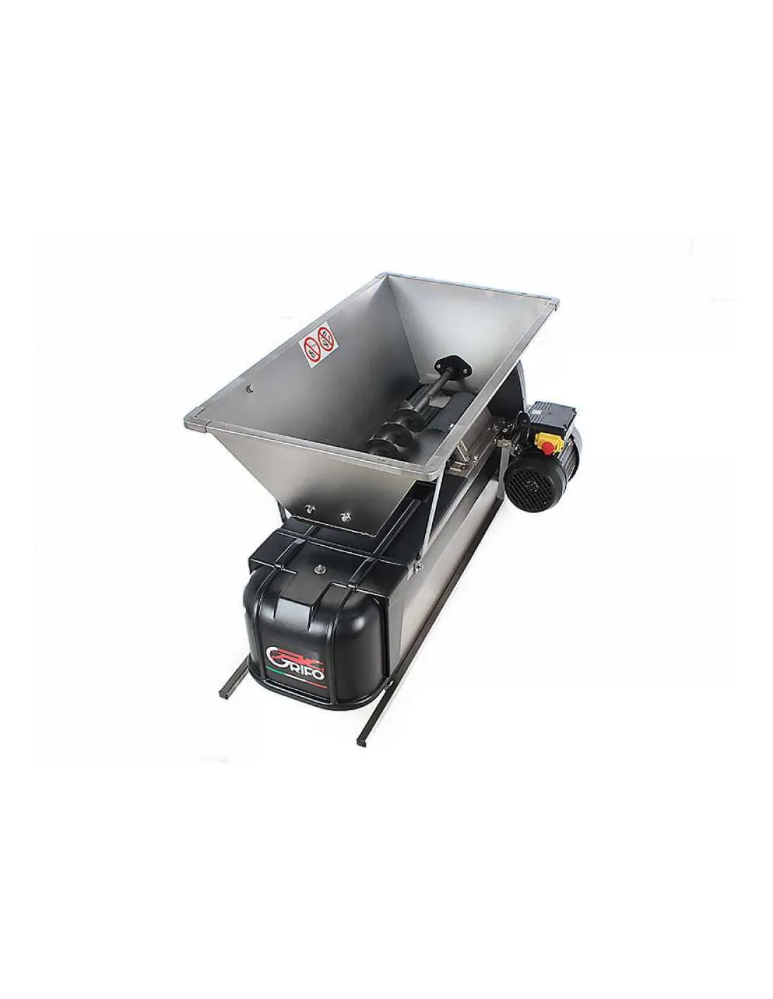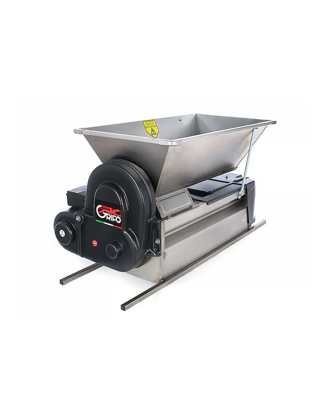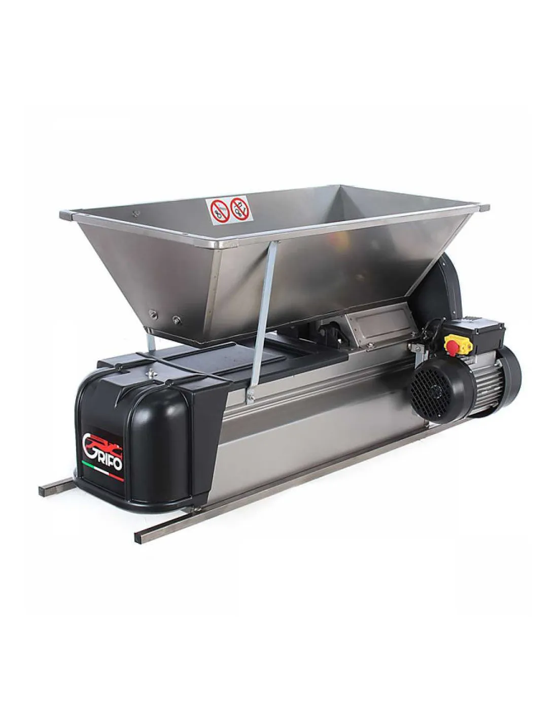 Despalilladora de uva monofásica con elevada capacidad de producción de 1000 a 1500 kg de uva. Esta estrujadora de uva cuanta con una tolva de abertura de 900x500 mm.