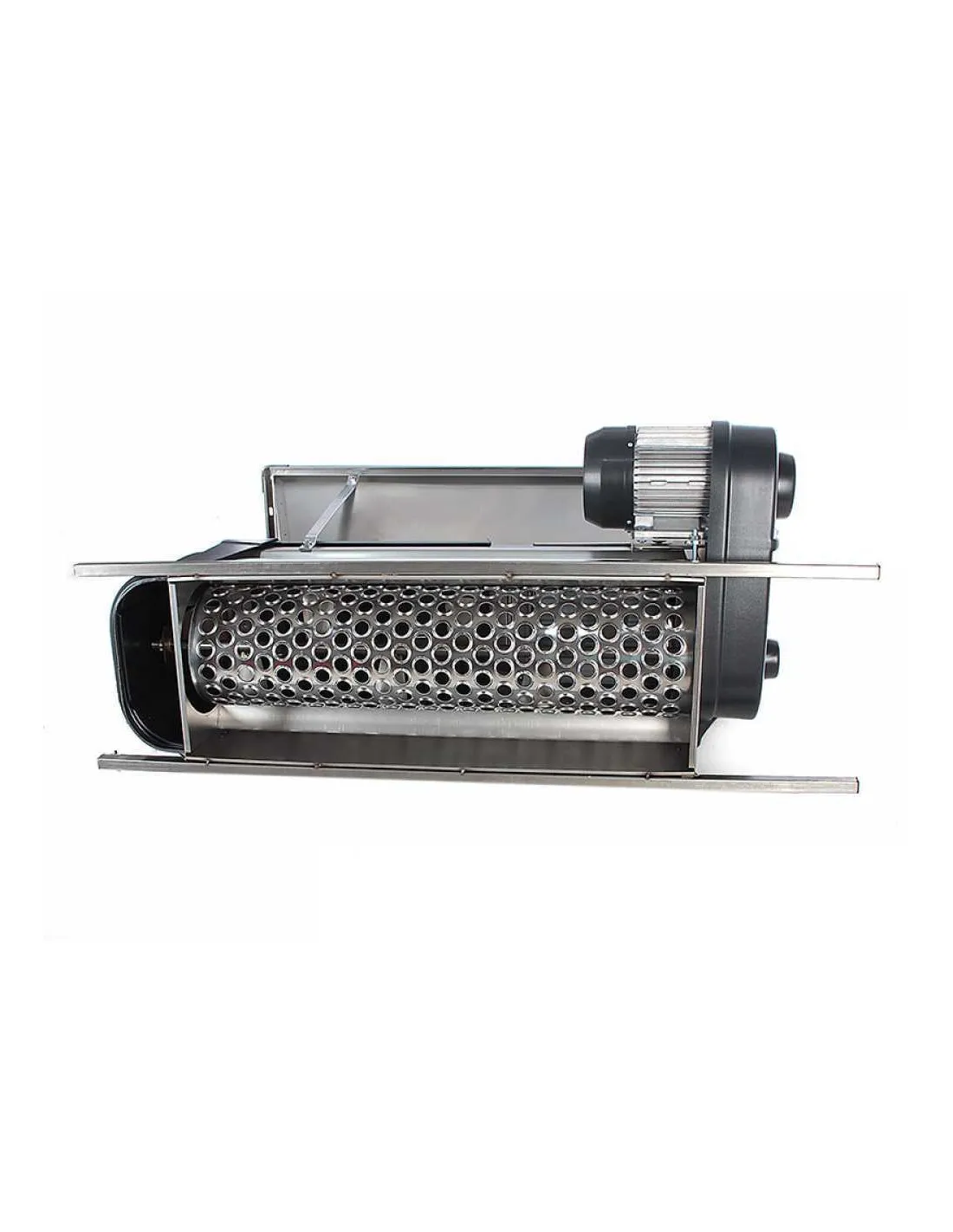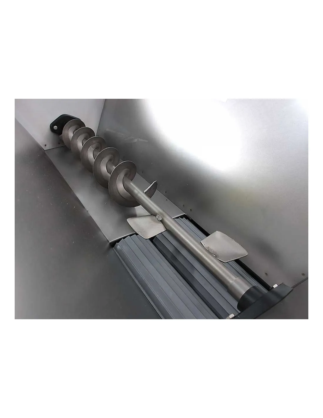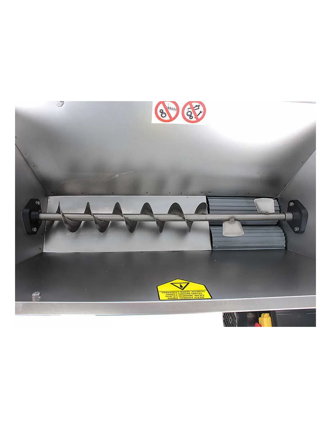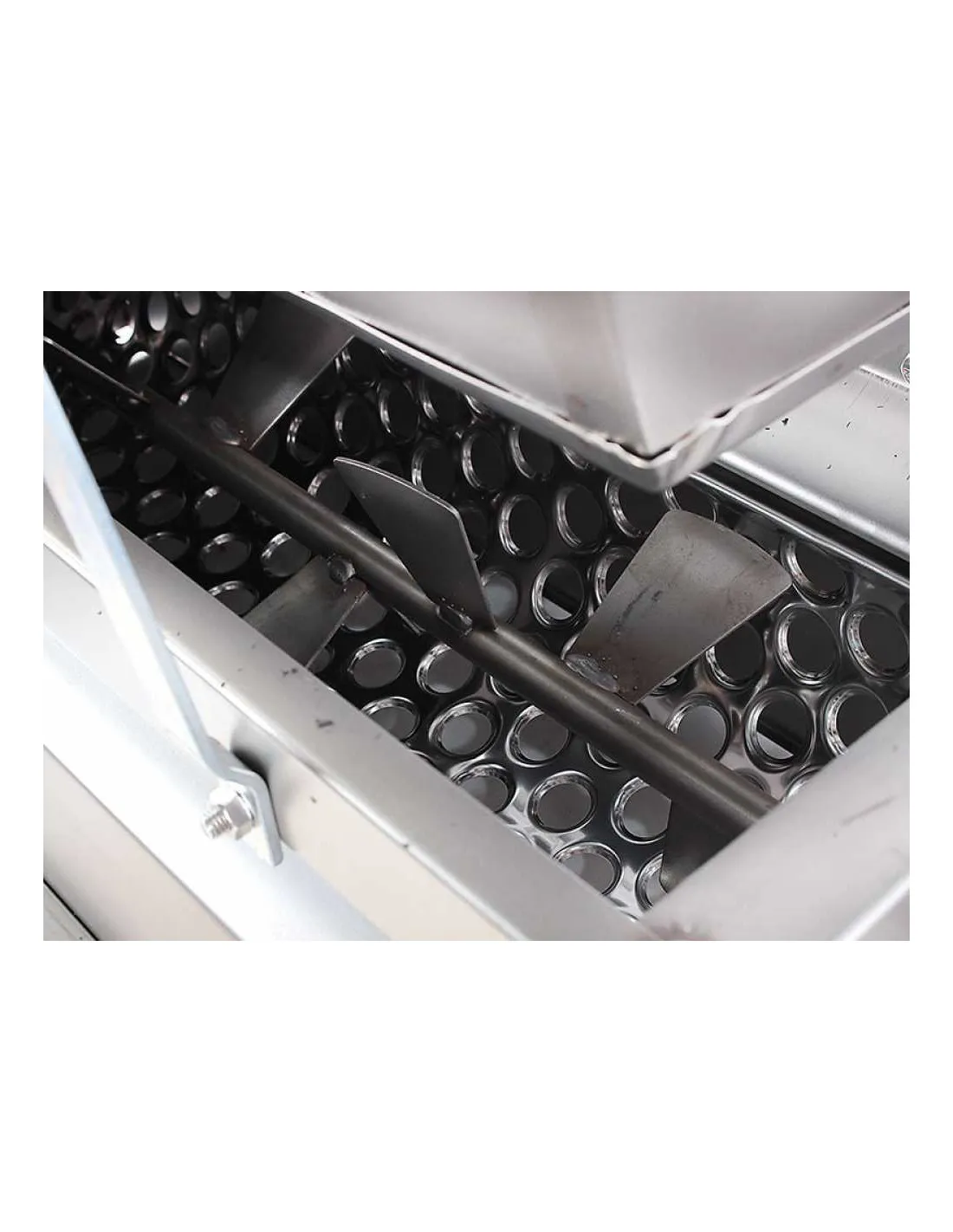 Despalilladora con motor eléctrico inoxidable de 0,75 kW (220 V), tolva de acero inoxidable, rodillos de nailon (220 mm) y rejilla inoxidable.