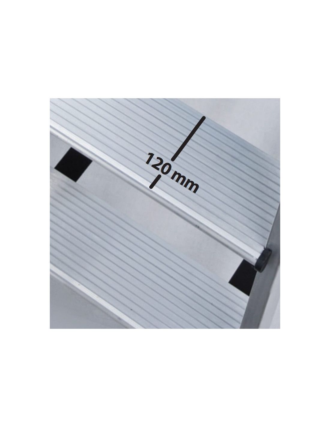 Peldaños extra anchos de 120 mm, bisagras de alta calidad y tacos especiales que impiden el deslizamiento fortuito.