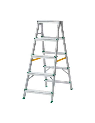Escalera de aluminio de doble acceso para bricolaje (DIY) elevada robustez y durabilidad gracias al espesor de aluminio de sus perfiles y el doble remachado trasero de peldaños.