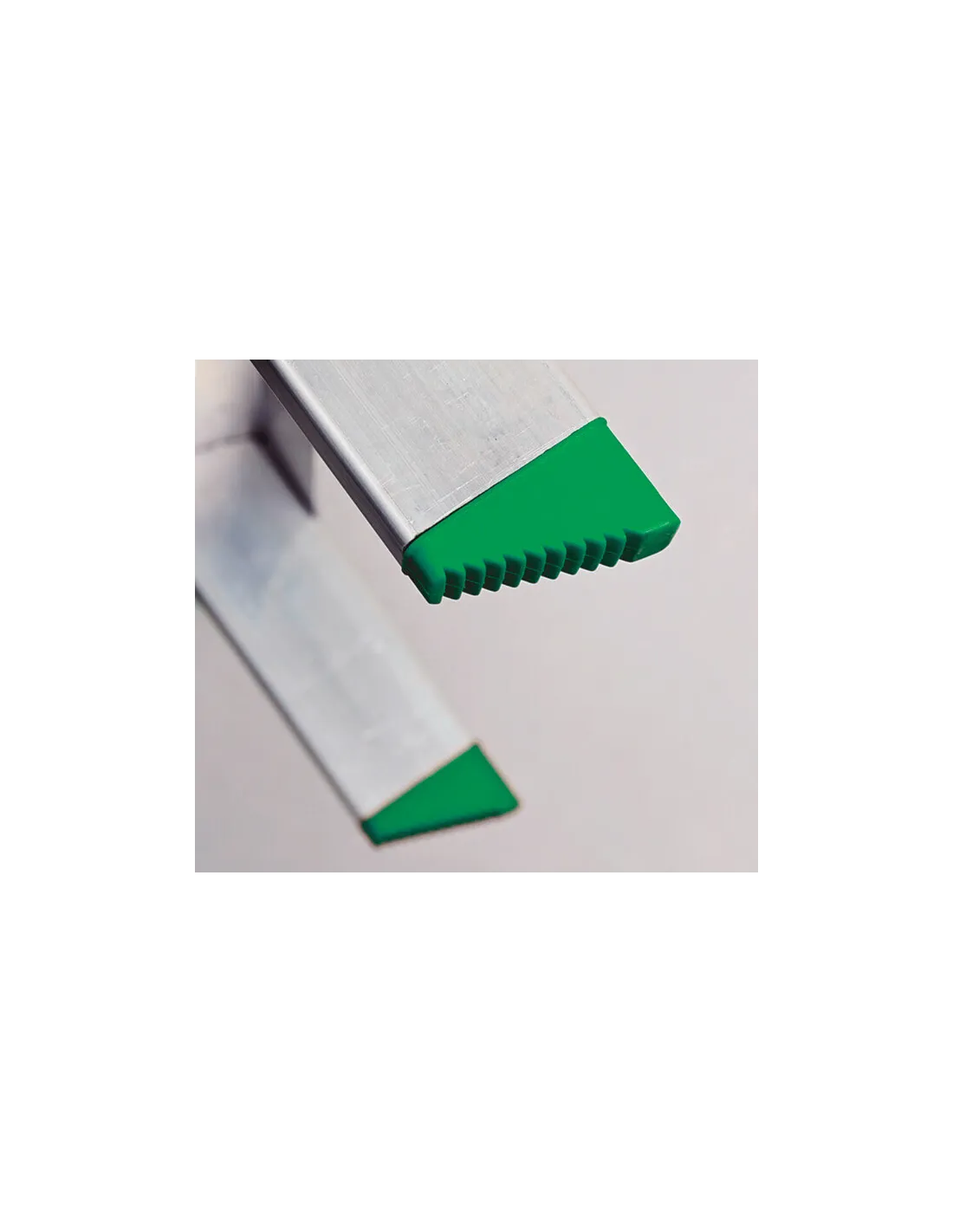 Sistema de bloqueo de seguridad, peldaños estriados antideslizantes. Cintas de seguridad y tacos antideslizantes.