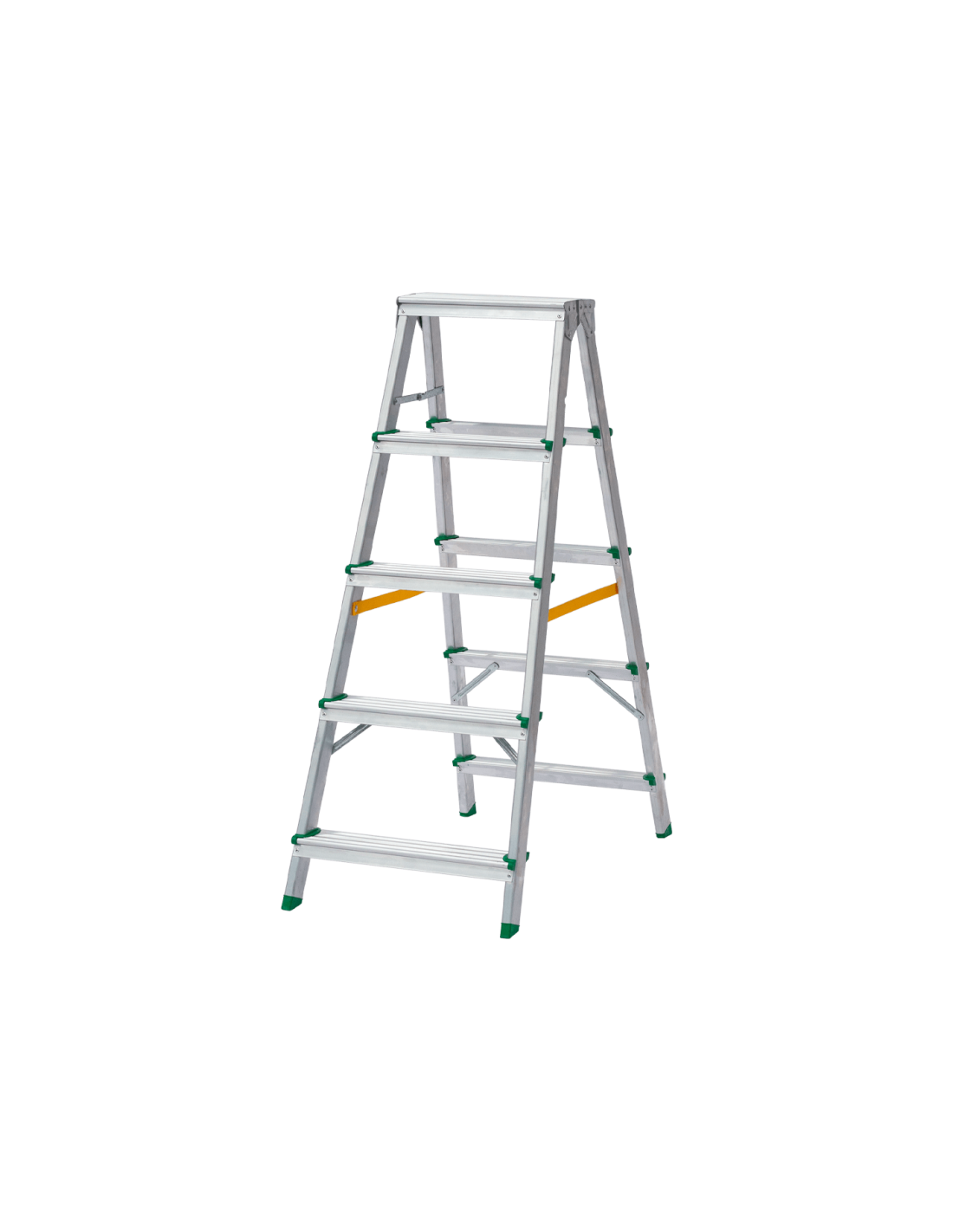 Escalera de aluminio de doble acceso para bricolaje (DIY) elevada robustez y durabilidad gracias al espesor de aluminio de sus perfiles y el doble remachado trasero de peldaños.