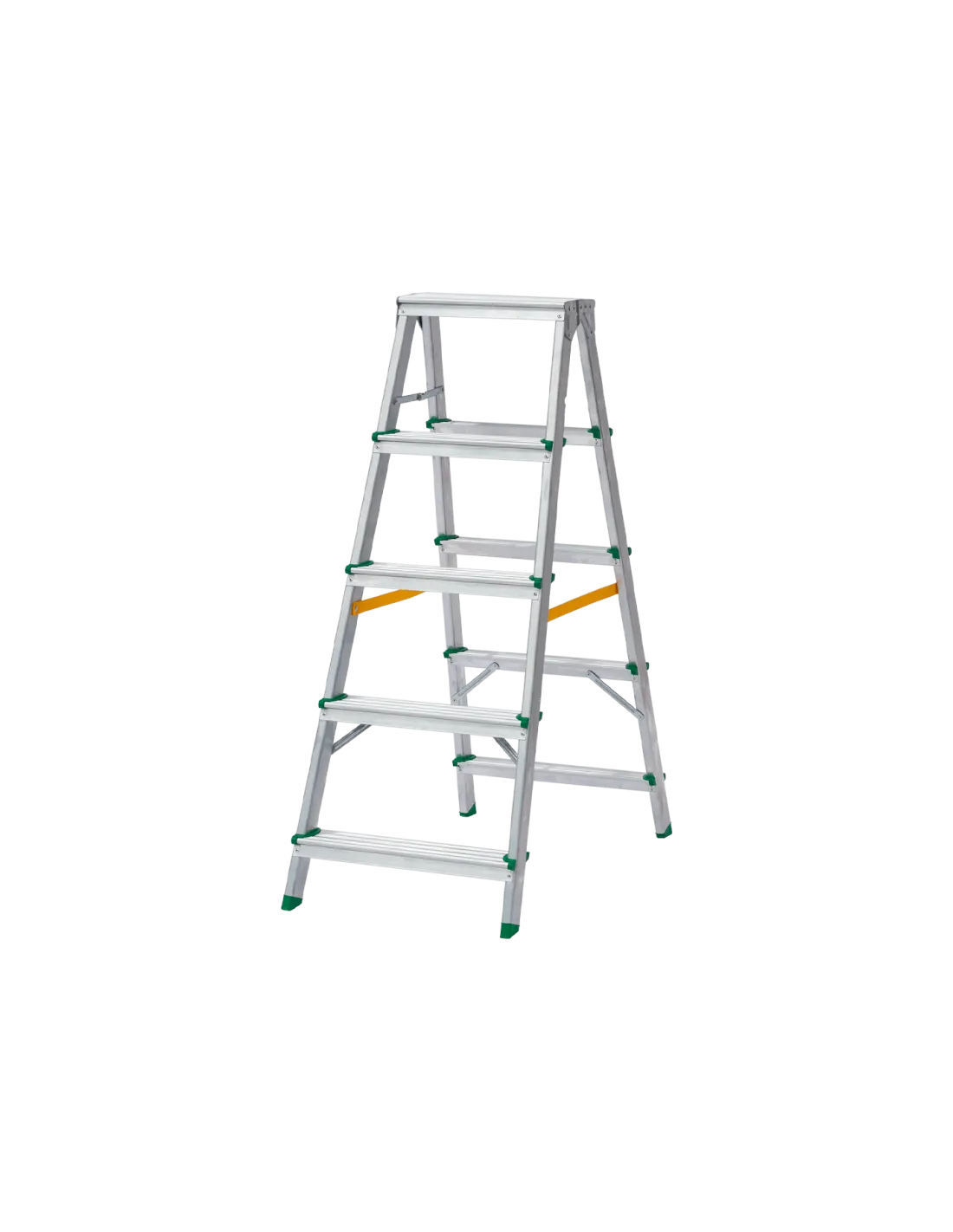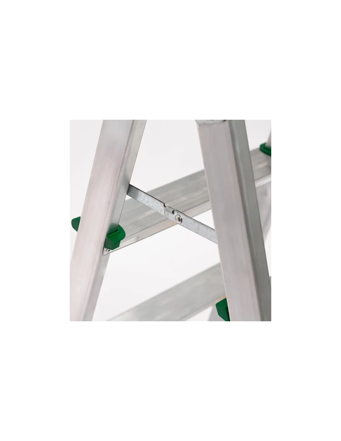 Escalera de aluminio de doble acceso para bricolaje (DIY) elevada robustez y durabilidad gracias al espesor de aluminio de sus perfiles y el doble remachado trasero de peldaños.